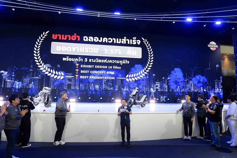 สำหรับการฉลองปิดยอดจำหน่ายรถจักรยานยนต์ยามาฮ่า ในงานบางกอก อินเตอร์เนชั่นแนล มอเตอร์โชว์ ครั้งที่ 45 มีขึ้น ณ บูธ YAMAHA REV PREMIUM MOBILITY WORLD อิมแพค ชาเลนเจอร์ ฮอลล์ 1 เมืองทองธานี เมื่อเร็วๆ นี้