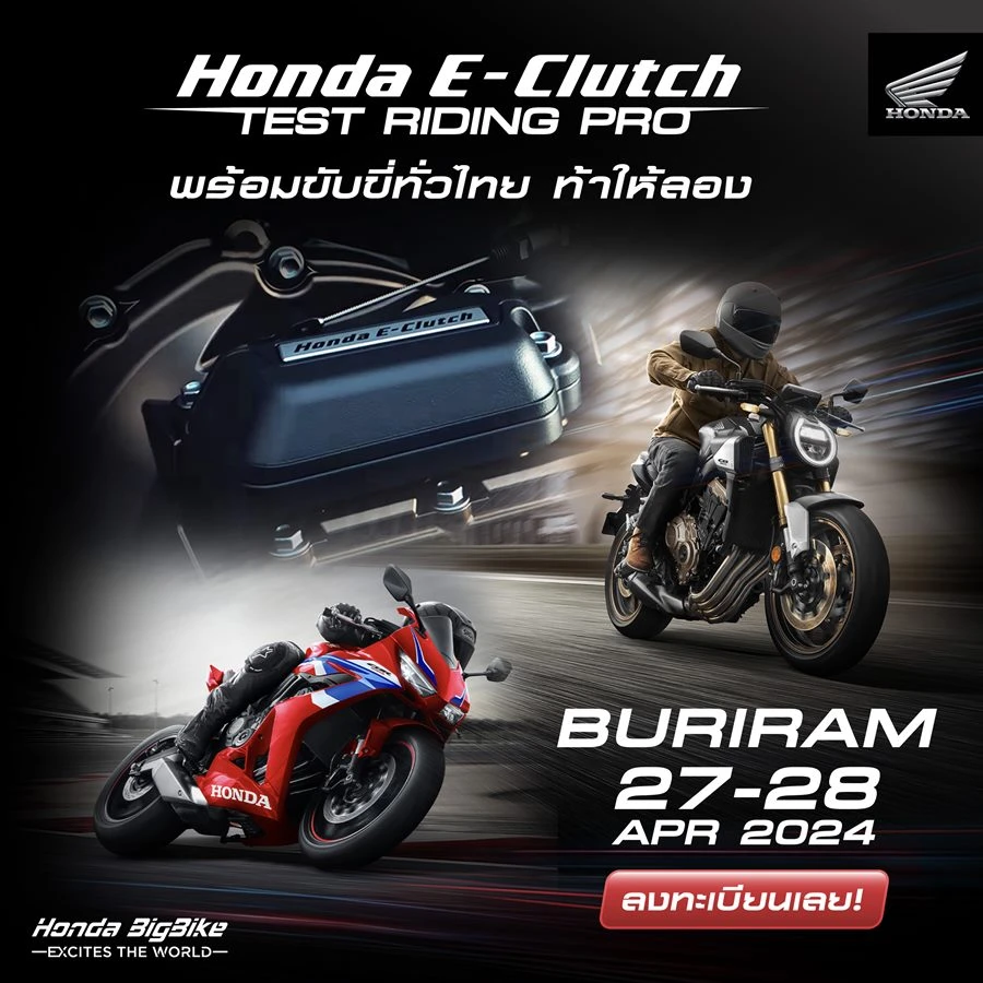 ฮอนด้าบิ๊กไบค์ ชวนลูกค้ามาร่วมทดลองขับขี่ All New Honda CBR650R และ All New Honda CB650R เพื่อสัมผัสประสบการณ์การขับขี่ Honda E-Clutch ระบบคลัตช์ไฟฟ้าอัจฉริยะ เทคโนโลยีใหม่ล่าสุดครั้งแรกของโลก ที่สามารถควบคุมรถเปลี่ยนเกียร์ได้ทันทีโดยไม่ต้องกำคลัตช์ โดยได้เปิดให้ทดสอบที่งานมอเตอร์ โชว์ 2024 ที่ผ่านมา ได้กระแสตอบรับที่ดีจากผู้ที่ได้เข้ามาทดสอบเป็นจำนวนมาก ทั้งนี้ เพื่อตอบรับกระแสความแรง ฮอนด้าบิ๊กไบค์ เปิดโอกาสให้ลูกค้าได้ทดสอบทั่วทุกภาคทั่วประเทศ ประเดิมจังหวัดแรกที่บุรีรัมย์ ระหว่างวันที่ 27 – 28 เมษายนนี้ ณ ลาน Paddock สนามช้างอินเตอร์เนชั่นแนล เซอร์กิต