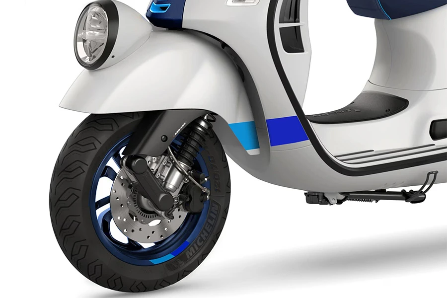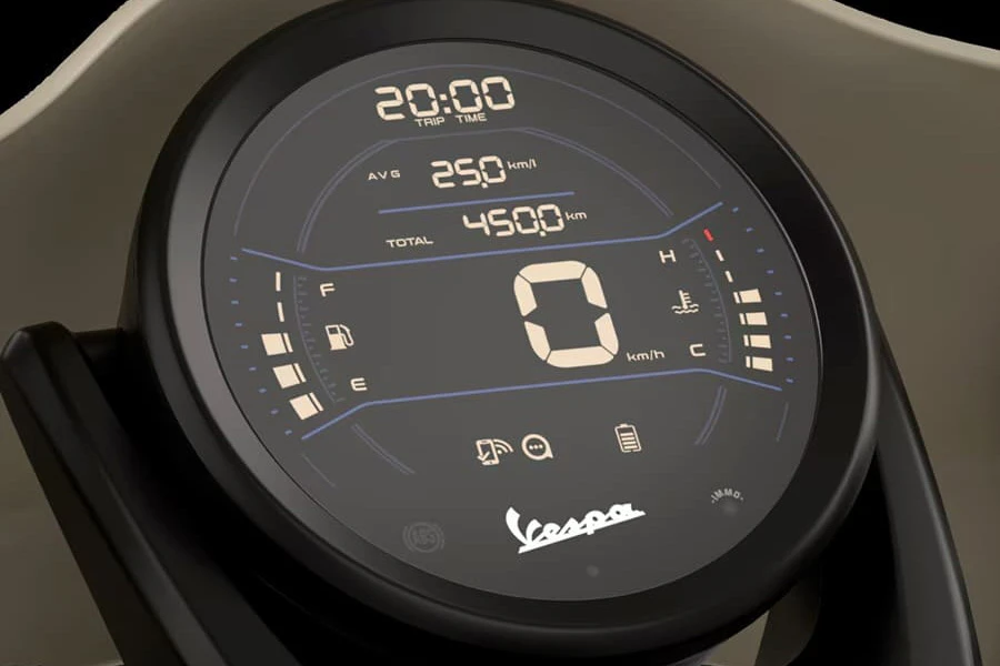 อีกส่วนที่โดดเด่นคือ ไฟหน้า LED ทรงกลมที่ถูกย้ายมาบริเวณบังโคลนด้านหน้า เพื่อให้เรานึกถึงประวัติศาสตร์การแข่งขันอันยาวนานของ Vespa รวมถึงมาตรวัดดิจิทัลยังเป็นแบบทรงกลมด้วยเช่นกัน