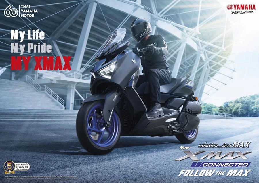 บริษัท ไทยยามาฮ่ามอเตอร์ จำกัด ฉลองครบรอบ 60 ปี พร้อมตอกย้ำความเป็นผู้นำรถจักรยานยนต์ พรีเมียมสปอร์ตออโตเมติก ด้วยการส่ง NEW XMAX CONNECTED โมเดลปี 2024 สู่ตลาดเมืองไทย ภายใต้คอนเซ็ปต์ MY LIFE, MY PRIDE … MY XMAX...หนึ่งเดียวต้อง MAX ยามาฮ่า เอ็กซ์แม็กซ์ คอนเน็คเต็ด ใหม่! พรีเมียมสปอร์ตออโตเมติกที่สะท้อนความภูมิใจในตัวตน บ่งบอกถึงสไตล์อย่างชัดเจน ด้วยดีไซน์ซูเปอร์สปอร์ตออเตเมติกที่เป็นเอกลักษณ์ของ MAX SERIES พร้อมเทคโนโลยีจอสี TFT เชื่อมต่อสมาร์ทโฟนสุดล้ำ ทันสมัยด้วยระบบนำทางจาก GARMIN สปอร์ตเต็มสมรรถนะ สัมผัสได้ถึงการขับขี่ที่แตกต่าง การันตีด้วยรางวัล Bike of the Year และคุ้มค่าด้วยการรับประกันนาน ถึง 5 ปี หรือ 50,000 ก.ม. พร้อม 4 สีสันใหม่!