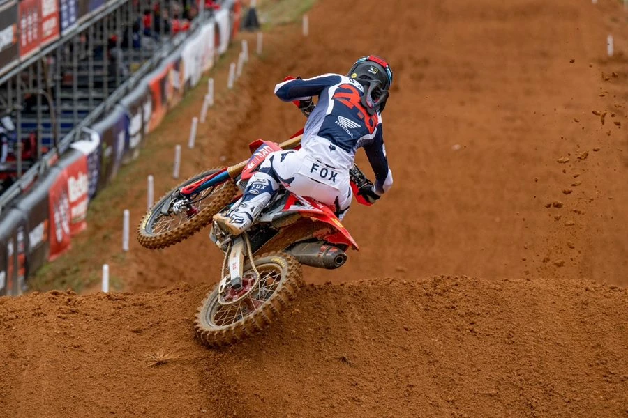 ทิม ไกจ์เซอร์ ยอดนักบิด Team HRC บิดสุดยอดรถแข่ง Honda CRF450R หมายเลข 243 ควอลิฟายมาเป็นอันดับที่ 1 ในการแข่งขันศึก MXGP 2024 สนามที่ 5 ที่ประเทศโปรตุเกส เมื่อสุดสัปดาห์ที่ผ่านมา จากนั้นเดินหน้าคว้าชัยชนะในเรซแรก และ คว้าท็อป 10 ในเรซที่ 2 รวมเก็บคะแนนจากทั้ง 2 เรซ มี 36 คะแนน ทะยานขึ้นรั้งอันดับที่ 1 ในตารางแชมป์เปี้ยนชิพด้วยคะแนนสะสม 252 คะแนน