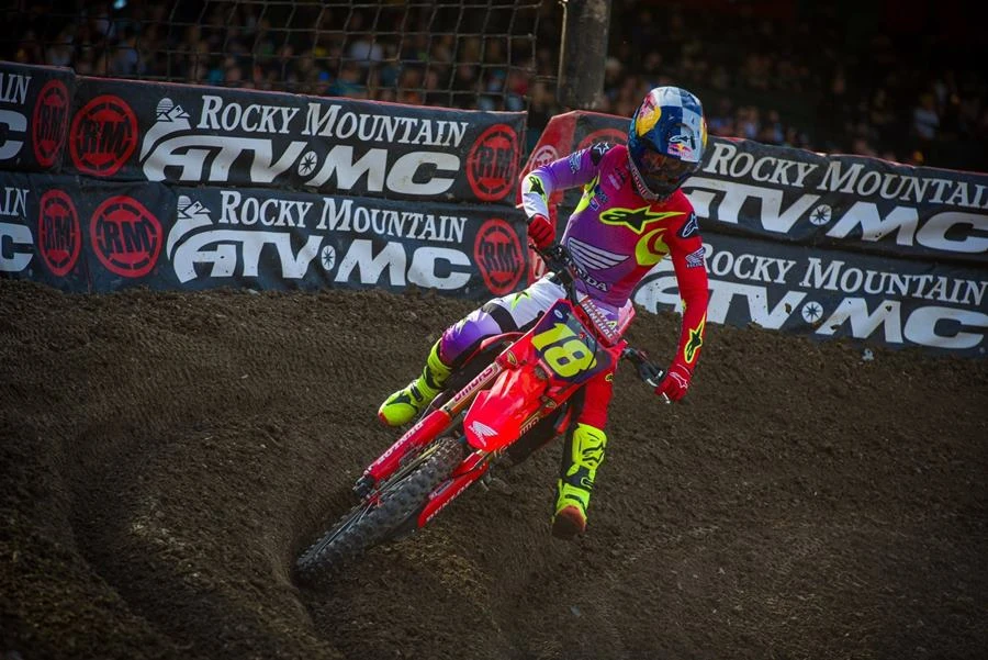 ฮันเตอร์ ลอว์เรนซ์ กับรถแข่ง Honda CRF450R หมายเลข 96 ทำผลงานคว้าโฮลช็อตได้สำเร็จ โดยมี เจ็ตต์ ลอว์เรนซ์ หมายเลข 18 ตามติดเบียดคว้าชัยไปครอง นับเป็นการคว้าชัยครั้งที่ 8 ของฤดูกาลนี้ ขณะที่ ฮันเตอร์ ลอว์เรนซ์ ตามเข้ามาในอันดับที่ 2