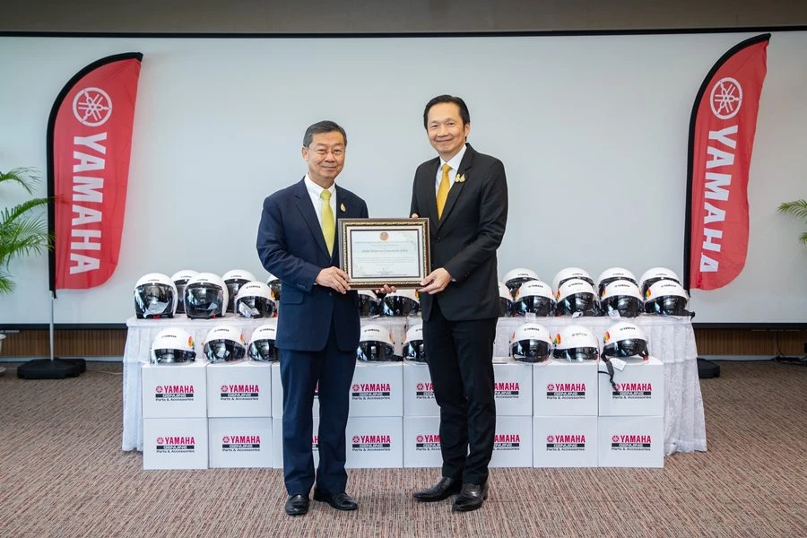 นายพงศธร เอื้อมงคลชัย ประธานกรรมการบริหาร พร้อมด้วยคณะผู้บริหารระดับสูง บริษัท ไทยยามาฮ่ามอเตอร์ จำกัด ร่วมกันมอบหมวกนิรภัยขนาดเล็ก ให้แก่ คณะกรรมการบูรณาการกู้ชีพฉุกเฉิน และความปลอดภัยทางถนน (วุฒิสภา) โดยมีนายสุรชัย เลี้ยงบุญเลิศชัย สมาชิกวุฒิสภา และประธานกรรมการฯ พลเอกพิศณุ อุไรเลิศ ที่ปรึกษากรรมการฯ, นายแพทย์อำพล จินดาวัฒนะ สมาชิกวุฒิสภา และกรรมการฯ, นายแพทย์สมชาย แสวงการ สมาชิกวุฒิสภา และกรรมการฯ ร่วมกันรับมอบ จำนวน 500 ใบ มูลค่า 175,000 บาท
