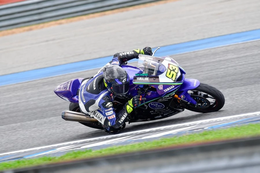 เอส-พงศ์สถิต แสนหลวง #95 และ ฟูลมูน-พศิน ชมพูรัตน์ #53 สองนักแข่งดาวรุ่งในสังกัด YAMAHA bLU cRU THAILAND RACING TEAM ที่ลงลุยศึกการแข่งขันรถจักรยานยนต์ทางเรียบชิงแชมป์ประเทศไทยรายการ PlanB Media BRIC SuperBike 2024 ในรุ่น Sport Production 400 Junior โชว์ฟอร์มสุดร้อนแรงในการแข่งขันชิงความเป็นเจ้าความเร็ว 2 ล้อ ณ สนามช้าง อินเตอร์เนชั่นแนล เซอร์กิต