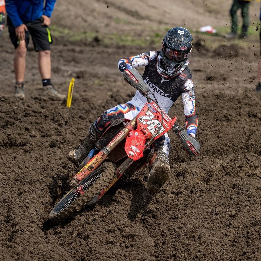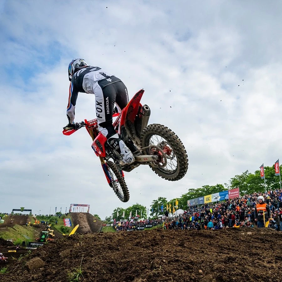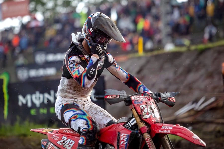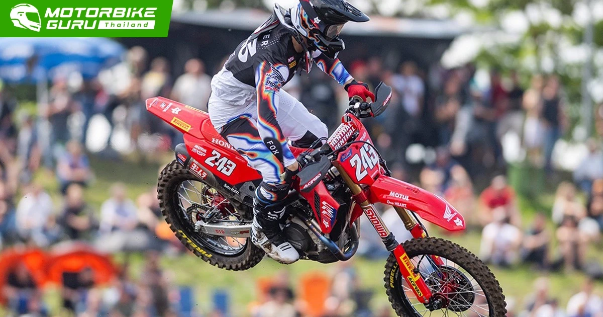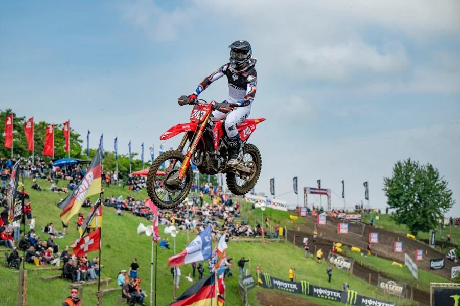 ทิม ไกเซอร์ จาก Team HRC บิดยอดรถแข่งทางฝุ่น Honda CRF450R ทำผลงานต่อเนื่อง คว้าดับเบิ้ลโพเดียม เก็บคะแนนสะสมลุ้นแชมป์ประจำฤดูกาลนี้ ในการแข่งขัน MX-GP 2024 สนามที่ 8 รายการ MXGP of Germany ที่ Teutschenthal ประเทศเยอรมนี เมื่อสุดสัปดาห์ผ่านมา