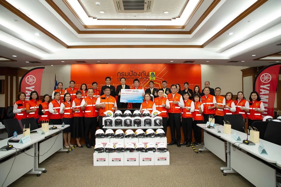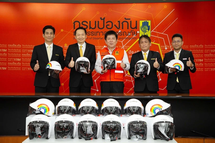 นายพงศธร เอื้อมงคลชัย ประธานกรรมการบริหาร, มร.ฮิเดฮิโกะ ทาคากิ รองประธานกรรมการบริหาร, นายอุกฤษณ์ ภาควิวรรธ รองผู้จัดการใหญ่ด้านวางแผนการค้า และการตลาด บริษัท ไทยยามาฮ่ามอเตอร์ จำกัด ร่วมกันมอบหมวกนิรภัยขนาดเล็กมาตรฐาน มอก. จำนวน 300 ใบ มูลค่า 105,000 บาท ให้กับ กรมป้องกันและบรรเทาสาธารณภัย โดยมี นายเธียรชัย ชูกิตติวิบูลย์ รองอธิบดีกรมป้องกันและบรรเทาสาธารณภัย (ปภ.) กระทรวงมหาดไทย เป็นผู้รับมอบ