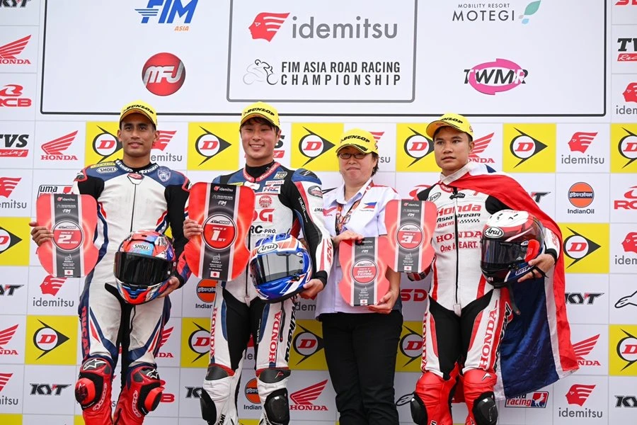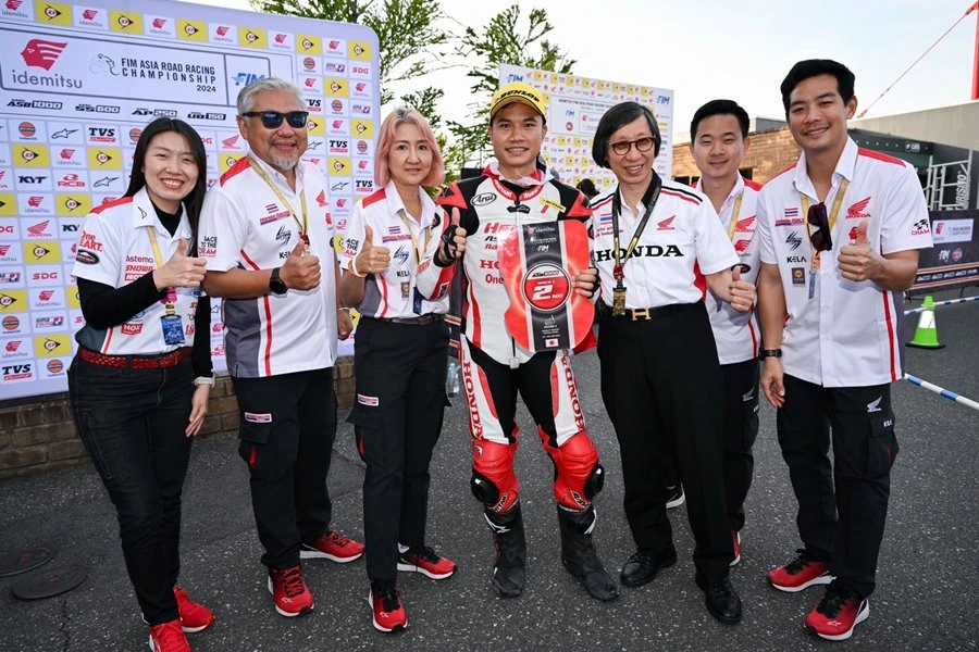 ทัพนักบิด ฮอนด้า เรซซิ่ง ไทยแลนด์ พร้อมยอดรถแข่ง Honda CBR Series พร้อมเต็มร้อย นำทัพโดย ชิพ-นครินทร์ หมายเลข 41 สังกัด ฮอนด้า เอเชีย ดรีม เรซซิ่ง วิท แอสติโม ที่ล่าสุดมีคะแนนสะสม 38 คะแนน รั้งท็อป 5 ของตารางแชมป์เปี้ยนชิพ และ แชมป์-ภาสวิชญ์ หมายเลข 52 สังกัด แอสติโม เอสไอ เรซซิ่ง วิท ไทยฮอนด้า หมายเลข 52 มีคะแนนสะสม 12 คะแนน รั้งอยู่ในอันดับที่ 12 ในรุ่นใหญ่ที่เร็วที่สุดของรายการอย่าง เอเชีย ซูเปอร์ไบค์ 1000 ซีซี (ASB1000) ด้วยรถแข่ง Honda CBR1000RR-R และ มิกซ์-ธนัช หมายเลข 31 มี 35 คะแนน รั้งท็อป 4 คะแนนสะสมของเอเชีย และ ไม้คิว-เกียรติศักดิ์ หมายเลข 85 ซึ่งมี 28 คะแนน อยู่ในอันดับที่ 7 ของตารางใน ซูเปอร์สปอร์ต 600 ซีซี (SS600) ด้วยรถแข่ง Honda CBR600RR ในศึก FIM Asia Road Racing Championship 2024 สนามที่ 3 ที่สนามโมบิลิตี้ รีสอร์ต โมเตกิ ประเทศญี่ปุ่น