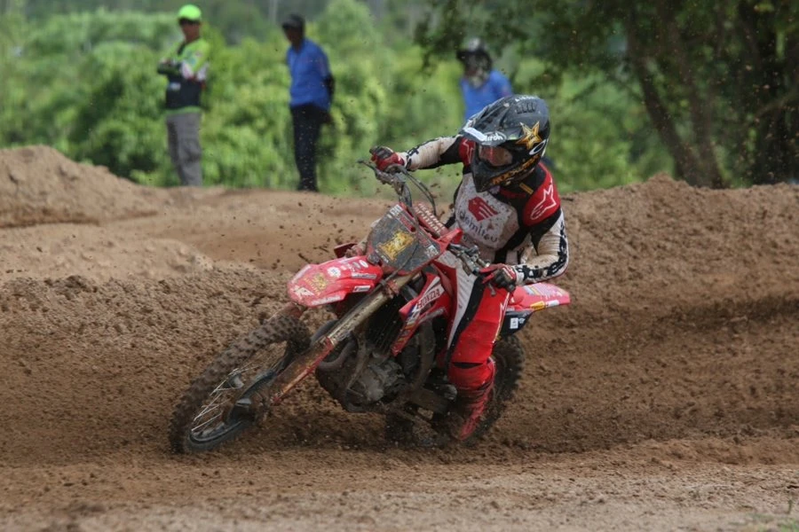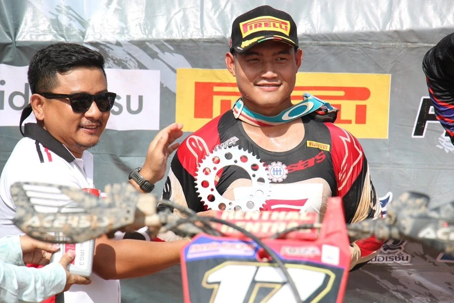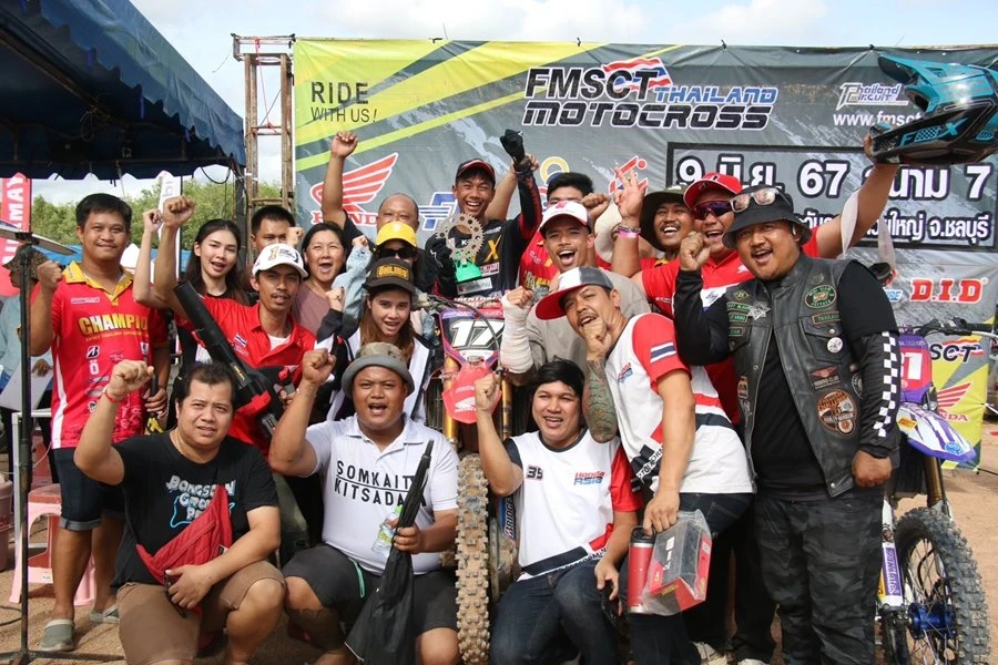 ยอดขุนพลแชมป์ประเทศไทย 4 สมัย อินทรีแซงค์-กฤษฎา และแชมป์ประเทศไทยคนปัจจุบัน ยศ-ภาณุพงศ์ บิดยอดรถแข่งเดิร์ทไบค์ Honda CRF250R ไล่บดคู่แข่งจากกลุ่มท้ายขบวนขึ้นมายืนโพเดียมอันดับที่ 2 และ อันดับที่ 4 ตามลำดับ อย่างสุดประทับใจกองเชียร์ ในศึกทางฝุ่นชิงแชมป์ประเทศไทย รุ่น MX250-A รายการ FMSCT Thailand Motocross Championship 2024 สนามที่ 7 ณ ศูนย์ฝึกกีฬาแห่งชาติ ภาคตะวันออก จังหวัดชลบุรี เมื่อวันอาทิตย์ ที่ 9 มิถุนายน ที่ผ่านมา