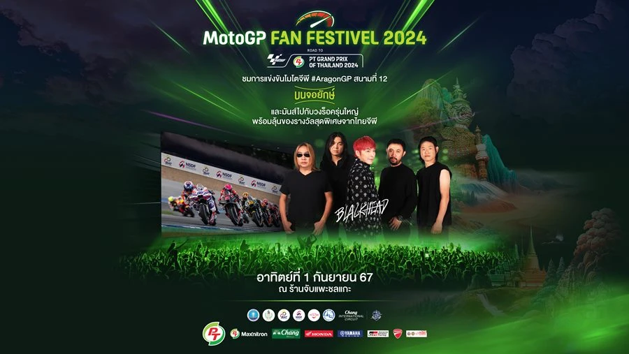 สำหรับ กิจกรรม MotoGP FAN FESTIVAL 2024 Road to PT Grand Prix of Thailand เปิดโอกาสให้แฟนโมโตจีพี ร่วมงานฟรี ร่วมชม-เชียร์ ร่วมลุ้นนักบิดที่ตัวเองชื่นชอบกับการแข่งขัน สนามที่ 12 อรากอน จีพี ประเทศสเปน พร้อมลุ้นชัยชนะ นักบิดที่เป็นความภาคภูมิใจของชาวไทย “ก้อง”สมเกียรติ จันทรา วันที่ 1 กันยายน 2567 เวลา 16.00-23.00 น. ที่ร้านจับแพะชลแกะ ราชพฤกษ์ กรุงเทพฯ โดยมีสเปเชียล คอนเสิร์ตจากศิลปินร็อกรุ่นใหญ่ วงร็อกหัวดำ BLACKHEAD ที่เตรียมเพลงฮิตข้ามกาลเวลามาให้ฟังอย่างจุใจ