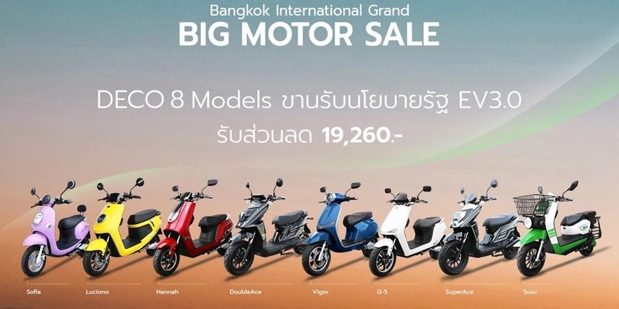 นายกฤตเมธ ตั้งพิชญโพธิวัฒน์ ประธานเจ้าหน้าที่บริหารบริษัท เดโก้ กรีน เอนเนอร์จี จำกัด กล่าวว่า ทาง DECO ได้นำรถมอเตอร์ไซค์ไฟฟ้าทั้งหมด 8 รุ่น เข้าร่วมงาน Big Motor Sale 2024 ณ ไบเทค บางนา ในวันที่ 23 สิงหาคม - 1 กันยายน 2567 ซึ่งรถทุกรุ่นนี้ได้รับการสนับสนุนจากรัฐบาลเพื่อส่งเสริมการใช้ยานยนต์ไฟฟ้าในประเทศไทย ซึ่งยังคงได้รับการสนับสนุนต่อเนื่องจนถึงสิ้นปี 2568