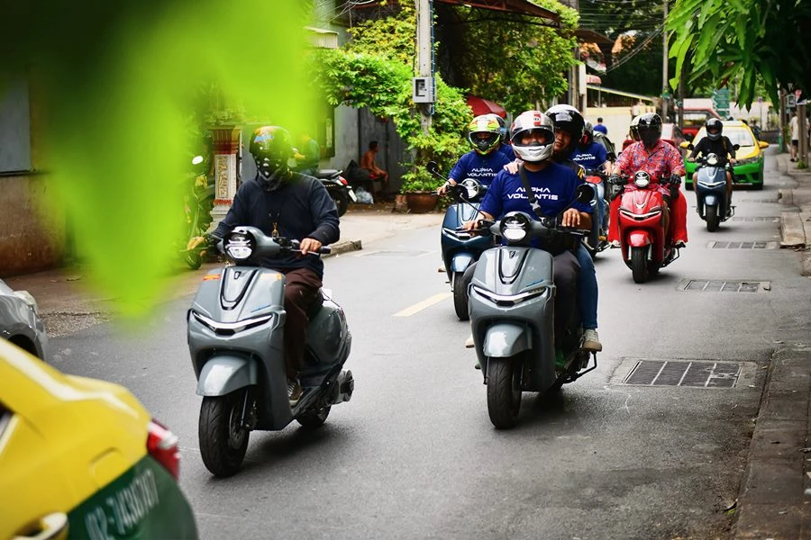 เมื่อพร้อมแล้ว!!! ได้เวลาออกเดินทางไปกับขบวน Alpha V. Shining Ride ขับขี่ไปบนเส้นทางถนนพระราม 3 ผ่านศูนย์การประชุมแห่งชาติสิริกิติ์ มุ่งหน้าสู่สะพานข้ามแยกคลองเตย เพื่อตัดเข้าถนนสาธุประดิษฐ์ ขบวน ALPHA VOLANTIS ขับขี่เรียงแถวอย่างสวยงาม สร้างสีสันบนถนนในเมืองยามเช้าให้คึกคักด้วยดีไซน์ตัวรถที่โดดเด่นสะท้อนตัวตนทุกการขับขี่ พร้อมตอบสนองไลฟ์สไตล์คนเมืองด้วยสมรรถนะที่คล่องตัว ก่อนนำขบวนทั้งหมดตรงไปยังจุดหมายที่ Craftsman Roastery & Brew Bar คาเฟ่ในโรงกลึงเก่า บรรยากาศสุดวินเทจ ที่มีทั้งความเท่ ความดิบ และความคลาสสิคอยู่ในที่เดียว