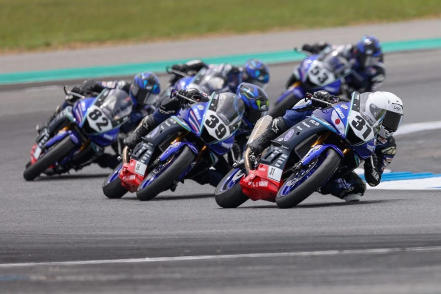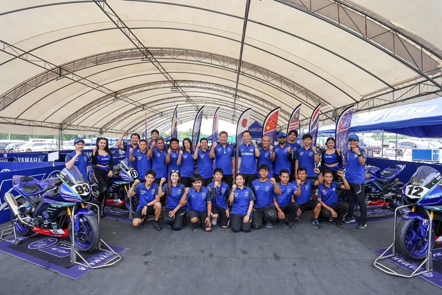 นายพงศธร เอื้อมงคลชัย ประธานกรรมการบริหาร บริษัท ไทยยามาฮ่ามอเตอร์ จำกัด มอบรางวัลไวลด์การ์ดเข้าร่วมการแข่งขัน YAMAHA R3 bLU cRU Super Finale ให้กับ เชลล์-ศักดิ์ชัย คงดวงดี ดาวรุ่งนักบิดวัย 14 และ คาเครุ โอกุนุกิ นักบิดแดนปลาดิบ และร่วมถ่ายภาพพร้อมกับขุนพลนักบิดในรายการ YAMAHA R3 bLU cRU Asia-Pacific 2024
