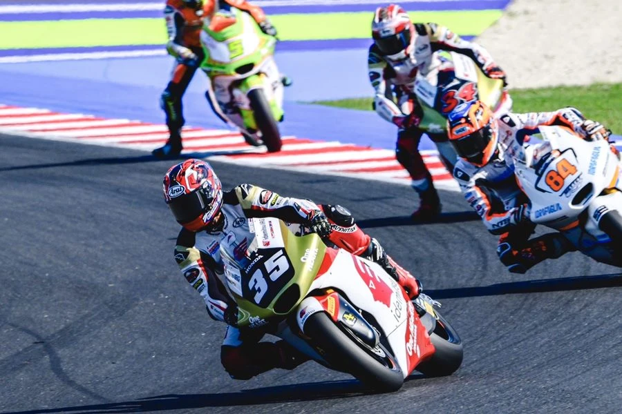 ส่วน ก๊องส์-ธัชกร หมายเลข 5 จาก ฮอนด้า ทีม เอเชีย ในศึกโมโตทรี พยายามอย่างหนักเพื่อขยับอันดับ ก่อนพลาดล้มและต้องนำรถเข้าพิทอย่างน่าเสียดาย