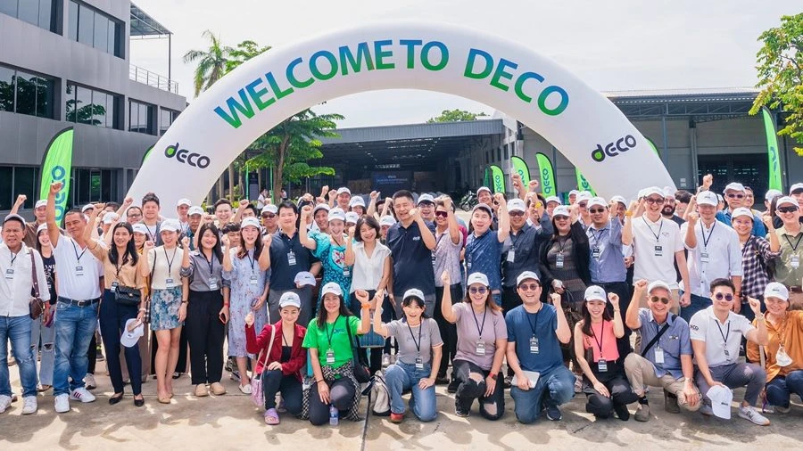 DECO เปิดเกมรุกจัดงาน Deco Dealer Conference: Electrify Your Journey ต้อนรับตัวแทนจำหน่ายจากทั่วประเทศ เยี่ยมชมฐานการผลิตสินค้าที่ค้นคว้าและพัฒนาระบบหลังบ้านมาอย่างต่อเนื่อง เพื่อสร้างความเชื่อมั่นทางธุรกิจ หนึ่งในแผนธุรกิจที่พร้อมเดินหน้าผลักดันรถมอเตอร์ไซค์ไฟฟ้าแบรนด์ไทย เป็นทางเลือกใหม่แก่ผู้บริโภคที่ขับเคลื่อนด้วยพลังงานสะอาด สู่การสร้างความยั่งยืนทั้งด้านสังคมและสิ่งแวดล้อม พร้อมขึ้นแท่นผู้นำตลาดรถมอเตอร์ไซค์ไฟฟ้าของไทย