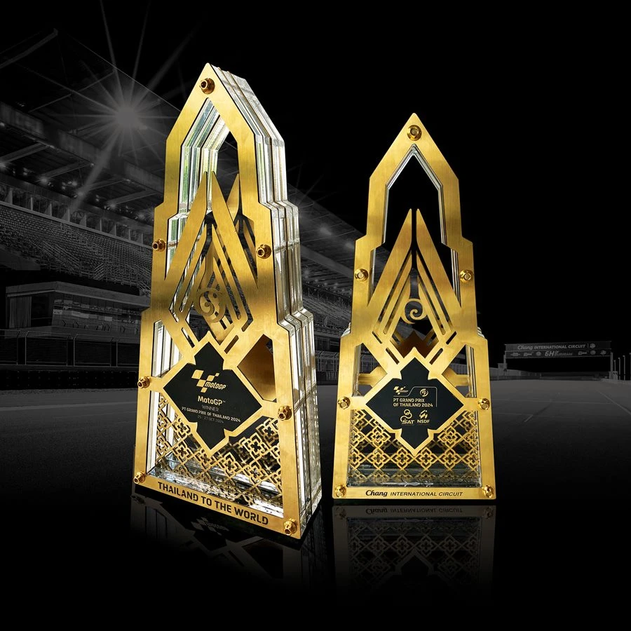 พร้อมกันนี้ยังได้เปิดตัว ถ้วยรางวัลการแข่งขัน หรือ โทรฟี่ ThaiGP ประจำปี 2024 ด้วยธีม บัลลังก์เจ้าแห่งความเร็ว ลักษณะไทยโมเดิร์น ผสานความงดงาม ปราสาทหินพนมรุ้ง ส่วนกลางถ้วยมีสัญลักษณ์การพนมไหว้ สวัสดี สื่อถึงการต้อนรับอันอบอุ่นและการให้ความเคารพในแบบไทย ตัวเลข ๑ ของไทย อยู่ตรงกลางและด้านล่างจะเป็นลวดลายไทย ส่วนวัสดุของตัวถ้วยมีการดัดแปลงนำ ชิ้นส่วนรถมอเตอร์ไซค์ มาเป็นส่วนหนึ่งของถ้วยรางวัล เช่น ตัวน็อต และ เฟรมอลูมิเนียม 5 แผ่น สื่อถึงการจัดการแข่งขันโมโตจีพีที่ประเทศไทยเป็นปีที่ 5 ด้วยสีทองและดำที่เป็นสีแห่งเกียรติยศ ความแข็งแกร่ง ความสง่าและทรงคุณค่า การออกแบบสอดผสานความงดงามแบบไทยสู่สายตาชาวโลก