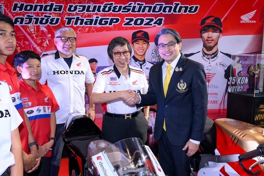 ไทยฮอนด้า ผู้นำอันดับหนึ่งวงการมอเตอร์สปอร์ตไทย ร่วมกับ ภาครัฐ-เอกชน แถลงข่าวใหญ่นับถอยหลังเข้าสู่ศึกจักรยานยนต์ทางเรียบชิงแชมป์โลก โมโตจีพี เวิลด์ แชมเปี้ยนชิพ 2024 สนาม 18 ที่ประเทศไทยเป็นเจ้าภาพในรายการ พีที กรังด์ปรีซ์ ออฟ ไทยแลนด์ พร้อมชวนแฟนชาวไทยร่วมส่งใจเชียร์กองทัพนักบิดไทยในโครงการ ฮอนด้า เรซ ทู เดอะ ดรีม นำโดย ก้อง-สมเกียรติ จันทรา ฮีโร่ประวัติศาสตร์ 2 แชมป์ชาวไทยใน โมโตทู และ ก๊องส์-ธัชกร บัวศรี ในศึก โมโตทรี รวมถึงนักบิดดาวรุ่งในรายการ เอเชีย ทาเลนต์ คัพ ขณะเดียวกันยังจัดเต็มอัดแน่นกิจกรรมให้แฟนความเร็วชาวไทย ร่วมสัมผัสประสบการณ์มอเตอร์สปอร์ตระดับเวิลด์คลาส ที่เตรียมระเบิดความมันส์ระหว่างวันที่ 25-27 ตุลาคมนี้ ที่ สนามช้าง อินเตอร์เนชั่นแนล เซอร์กิต จ.บุรีรัมย์