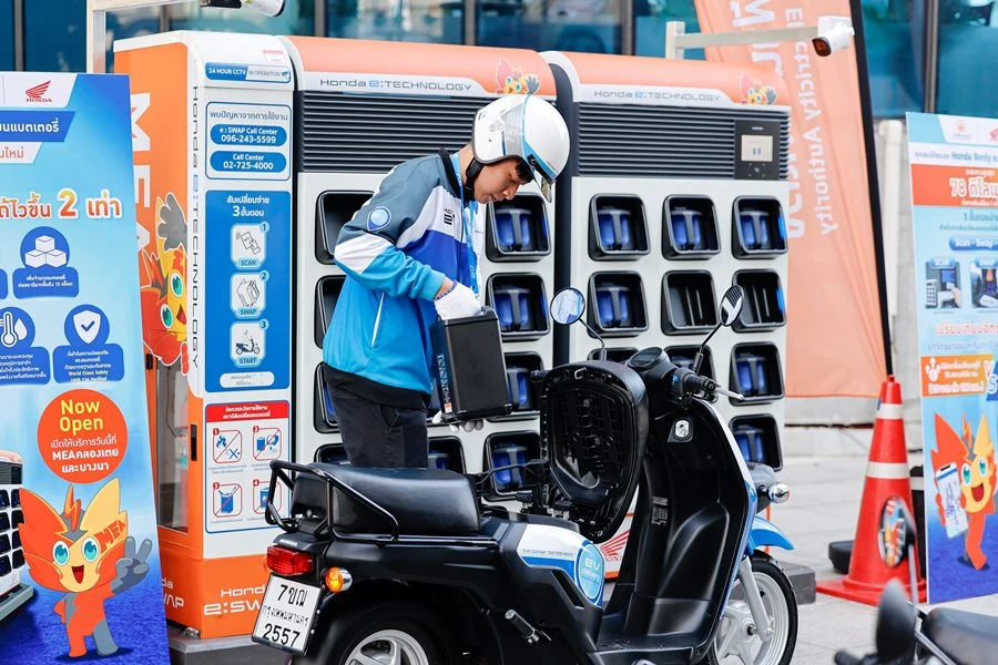 ด้าน ประธาน บริษัท ไทยฮอนด้า จำกัด กล่าวเสริมว่า “นับเป็นอีกหนึ่งก้าวสำคัญของไทยฮอนด้า ที่ได้ร่วมมือกับ MEA ในการร่วมกันส่งเสริมการใช้พลังงานสะอาด และขับเคลื่อนการใช้รถจักรยานยนต์ไฟฟ้าในประเทศไทย โดยไทยฮอนด้า มีความมุ่งมั่นที่จะขยายระบบนิเวศยานยนต์ไฟฟ้า EV Ecosystem ในประเทศไทยอย่างยั่งยืน ด้วย Honda BENLY e: ที่เราได้พัฒนาขึ้นเพื่อตอบสนองต่อการเปลี่ยนแปลงด้านพลังงานในอนาคต ใช้พลังงานสะอาดลดการปล่อยมลพิษ พร้อมตู้สับเปลี่ยนแบตเตอรี่มาตรฐานฮอนด้า Honda e: Swap Station ที่สามารถสับเปลี่ยนแบตเตอรีได้ภายใน 1 นาที และตู้ควบคุมอุณหภูมิตลอดการชาร์จเพื่อให้แบตฯ ปล่อยพลังงานที่เสถียรและปลอดภัย ภายใต้มาตรฐาน World Class Safety UNR136 รวมทั้งสิ้น 44 แห่ง ที่พร้อมให้บริการทั่วกรุงเทพฯ และปริมณฑล รวม 2 แห่งนี้ ซึ่งเป็นพื้นที่ให้บริการสำคัญ คือ ที่การไฟฟ้านครหลวง (สำนักงานใหญ่) คลองเตย และที่การไฟฟ้านครหลวงเขตบางนา ขอขอบคุณ MEA ในการสนับสนุนขยายสถานีสับเปลี่ยนแบตเตอร์รี่ Honda e: Swap ซึ่งเป็นส่วนสำคัญในการสร้างความมั่นใจให้ผู้ใช้รถจักรยานยนต์ไฟฟ้า ในอนาคตเรามีแผนที่จะขยายเพิ่มอีกอย่างต่อเนื่อง เพื่อรองรับตลาดรถจักรยานยนต์ไฟฟ้าที่มีแนวโน้มเพิ่มขึ้น อย่างมีประสิทธิภาพ โดยในปีนี้เราตั้งเป้าส่งมอบรถจักรยานยนต์ไฟฟ้าให้กับผู้ (เช่า) ใช้จำนวน 850 คัน”