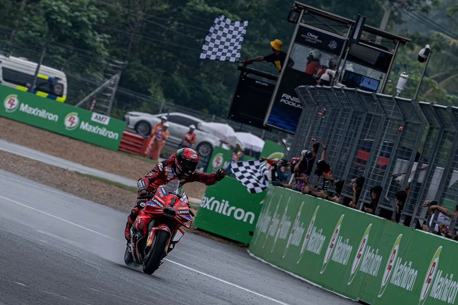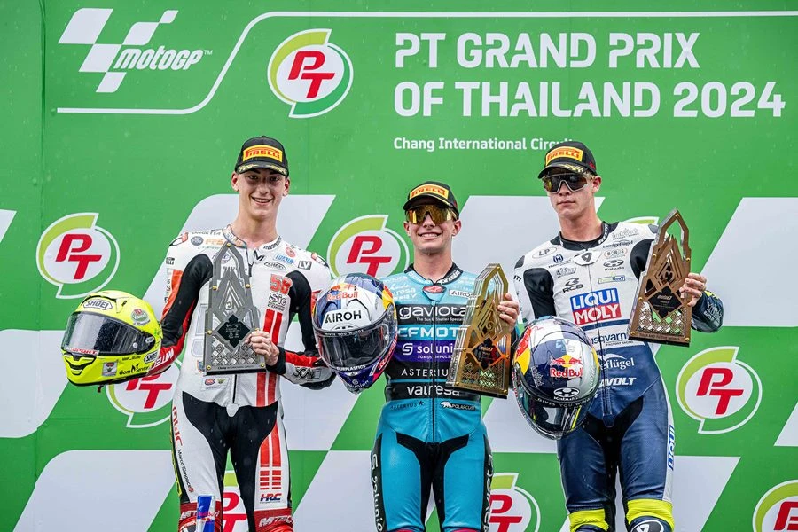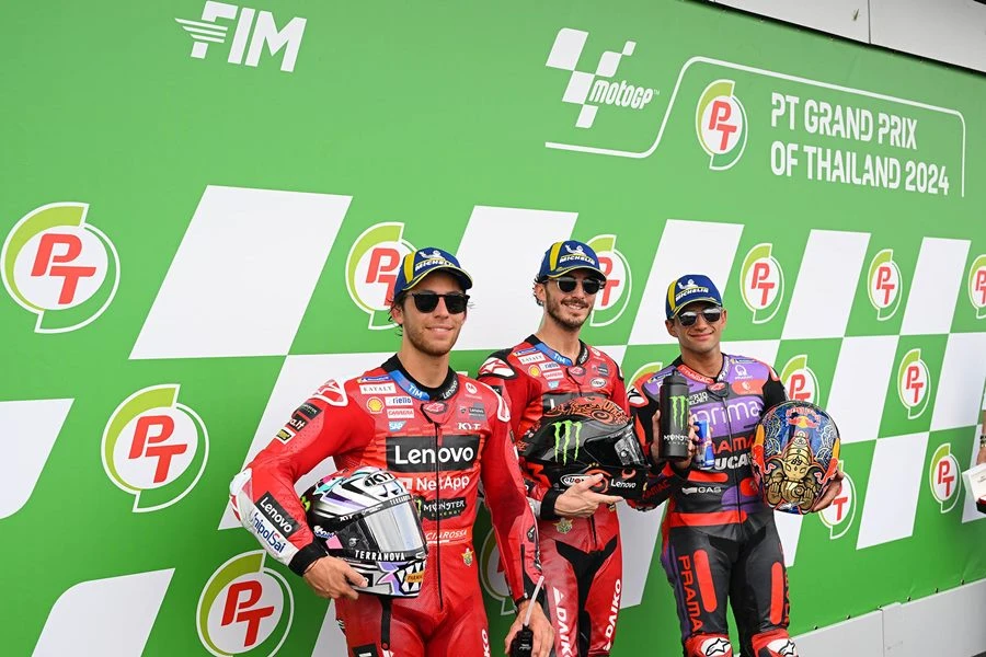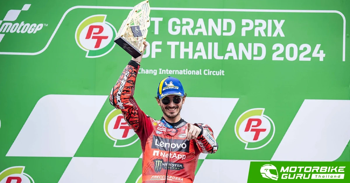 การแข่งขันรถจักรยานยนต์ทางเรียบชิงแชมป์โลก หรือ โมโตจีพี สนามประเทศไทย ภายใต้ชื่อรายการ PT Grand Prix of Thailand 2024 ประสบความสำเร็จยิ่งใหญ่ ขณะเกมการแข่งขันเข้มข้นระดับ 5 ดาว ท่ามกลางแฟนความเร็วตลอด 3 วัน มากถึง 205,343 คน ส่วนผลการแข่งขันในรุ่นใหญ่ ฟรานเชสโก้ บันยาญ่า แชมป์โลก 2 สมัยชาวอิตาเลียนจาก ดูคาติ เข้าวินพร้อมตีตื้น ฮอร์เก มาร์ติน คู่แข่งชาวสแปนิชจาก พรามัค เรซซิ่ง เหลือ 17 คะแนน ขณะ ก้อง-สมเกียรติ จันทรา ฮีโร่นักบิดชาวไทยจาก อิเดมิตสึ ฮอนด้า ทีม เอเชีย สร้างผลงานสุดประทับใจ สตาร์ตกริด 13 แซงคว้าท็อป 4 ในรุ่น โมโตทู ส่วน ไอ โอกูระ นักบิดญี่ปุ่นได้ฉลองแชมป์อย่างยิ่งใหญ่กับแฟนชาวไทยที่ สนามช้าง อินเตอร์เนชั่นแนล เซอร์กิต จ.บุรีรัมย์