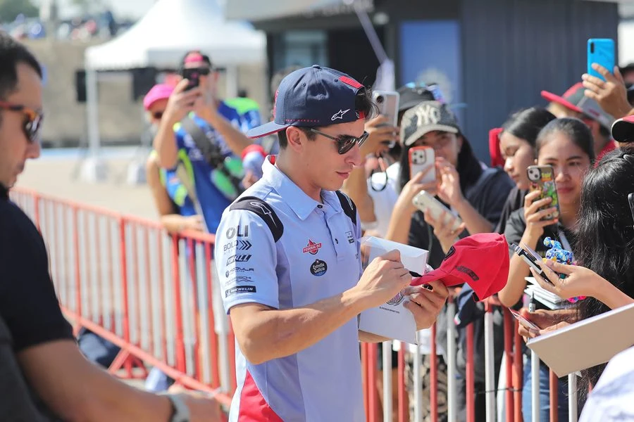 บรรยากาศ PT Grand Prix of Thailand 2024 สุดคึกคักด้วยขบวน ชัตเทิ่ล แต๋น นับร้อยคัน อีกหนึ่งความภูมิใจของ ฅนบุรีรัมย์ ที่พร้อมให้บริการนักท่องเที่ยวจากทั่วโลก โดยแฟนคลับที่เดินทางมาถึงก่อน ได้พบกับการเซอร์วิสแฟนๆของเหล่าซูเปอร์สตาร์นักบิดที่เป็นกันเอง ทั้งการถ่ายภาพ แจกลายเซ็น การรับมอบของที่ระลึกจากแฟนๆ ในอิริยาบถสบายๆ หลัง Paddock ก่อนเข้าสู่โปรแกรมแข่งขันที่เข้มข้น