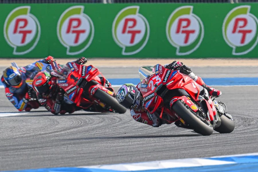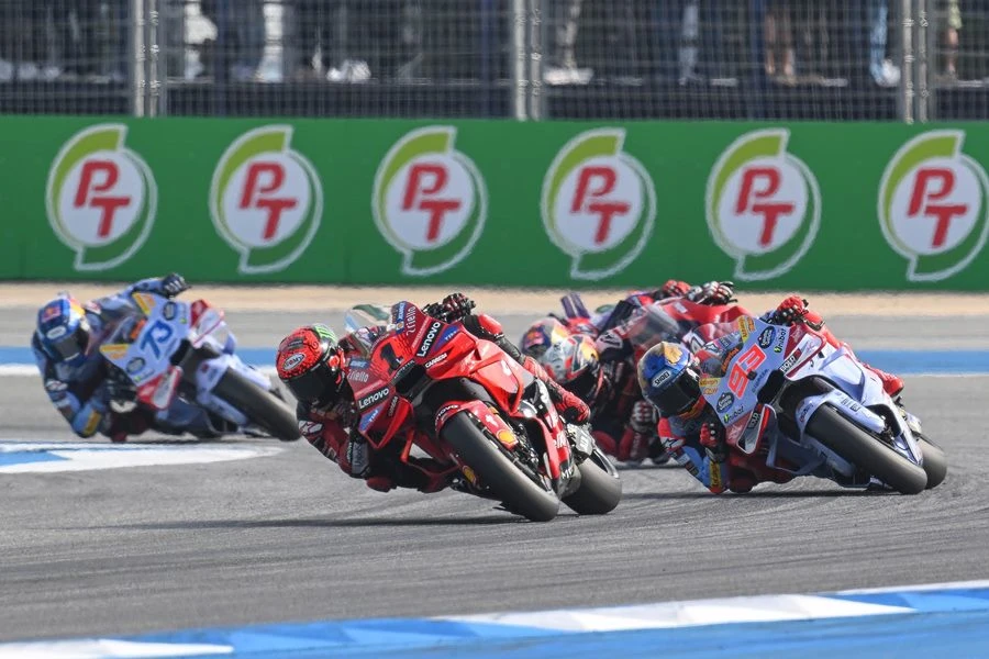 การแข่งขัน PT Grand Prix of Thailand 2024 เข้าสู่เมนเรซ ท่ามกลางแฟนความเร็วตลอด 3 วันมากถึง 205,343 คน ไฮไลต์อยู่ที่การขับเคี่ยวเพื่อลุ้นแชมป์โลกพรีเมียร์คลาส โดยก่อนแข่ง ฮอร์เก มาร์ติน มีคะแนนนำ ฟรานเชสโก้ บันยาญ่า อยู่ทั้งสิ้น 22 คะแนน แต่ดันมีฝนตกลงมาส่งผลให้ต้องประกาศเป็น Wet Race แข่งขันท่ามกลางผิวแทร็กเปียก ชิงชัยทั้งสิ้น 26 รอบสนาม