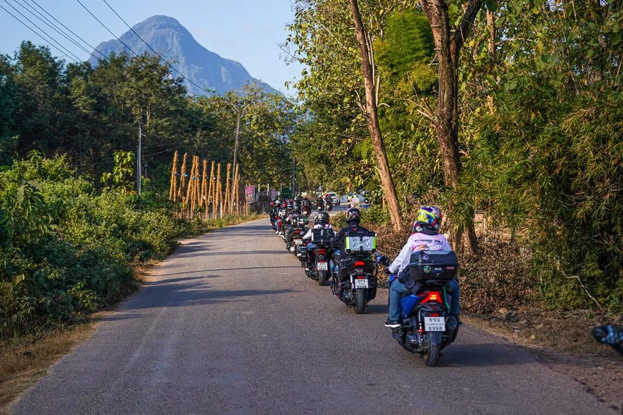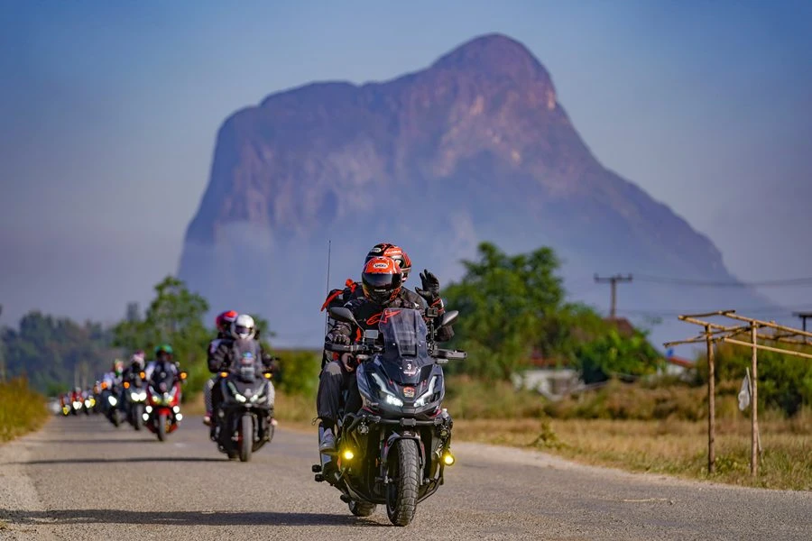 กิจกรรมครั้งนี้ เริ่มต้นที่การเดินทางเข้าสู่นครหลวงเวียงจันทน์ สาธารณรัฐประชาธิปไตยประชาชนลาวเพื่อปักหมุดเช็กอินแลนด์มาร์กสำคัญอย่าง ประตูชัย และพระธาตุหลวง ก่อนเดินทางสู่เมืองเฟือง ผ่านเส้นทางธรรมชาติ และบรรยากาศริมน้ำ ทั้งนี้ไฮไลต์สำคัญในวันที่สองคือการมุ่งหน้าสู่เมืองวังเวียง และขับขี่ขึ้นจุดชมวิว ณ ผาหนามไซ โดยเป็นการเปิดโอกาสให้ไบค์เกอร์ได้ทดสอบสมรรถนะรถจักรยานยนต์คันโปรดที่สามารถพิชิตทุกสภาพเส้นทางอย่างมั่นใจ