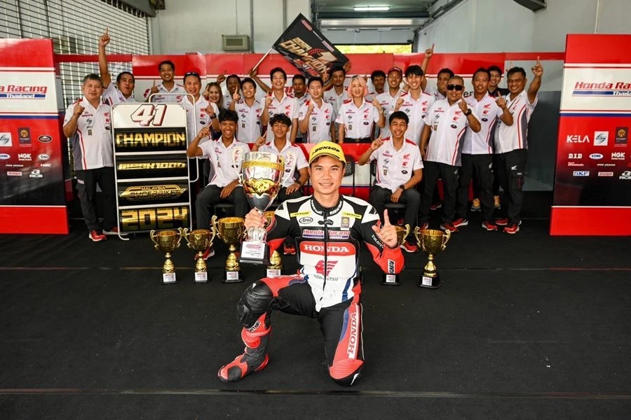 นักบิดดาวรุ่ง ฮอนด้า เรซซิ่ง ไทยแลนด์ สร้างผลงานยอดเยี่ยมตลอดฤดูกาล 2024 ตอกย้ำผลงานความสำเร็จ ไทยฮอนด้า ผู้นำวงการมอเตอร์สปอร์ตไทย ภายใต้โครงการ ฮอนด้า เรซ ทู เดอะ ดรีม สร้างนักแข่งรุ่นใหม่สู่การเป็นนักแข่งระดับโลกในรุ่นต่อไป ตามรอย ก้อง-สมเกียรติ จันทรา นักบิดโมโตจีพีชาวไทยคนแรกในประวัติศาสตร์