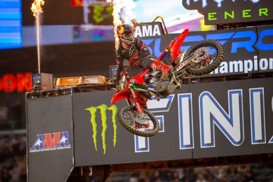เจ็ตต์ ลอว์เรนซ์ (Jett Lawrence) ยอดนักบิดชาวออสเตรเลียเจ้าของแชมป์ AMA Supercross จากทีม HRC บิดยอดรถแข่ง Honda CRF450R หมายเลข 1 คว้าชัยชนะในการแข่งขัน AMA Supercross 2025 สนามที่ 3 ในอนาไฮม์ สหรัฐอเมริกา รั้งท็อป 3 ในตารางแชมเปี้ยนชิพ ปักหลักสู่การป้องกันแชมป์อย่างแข็งแกร่ง