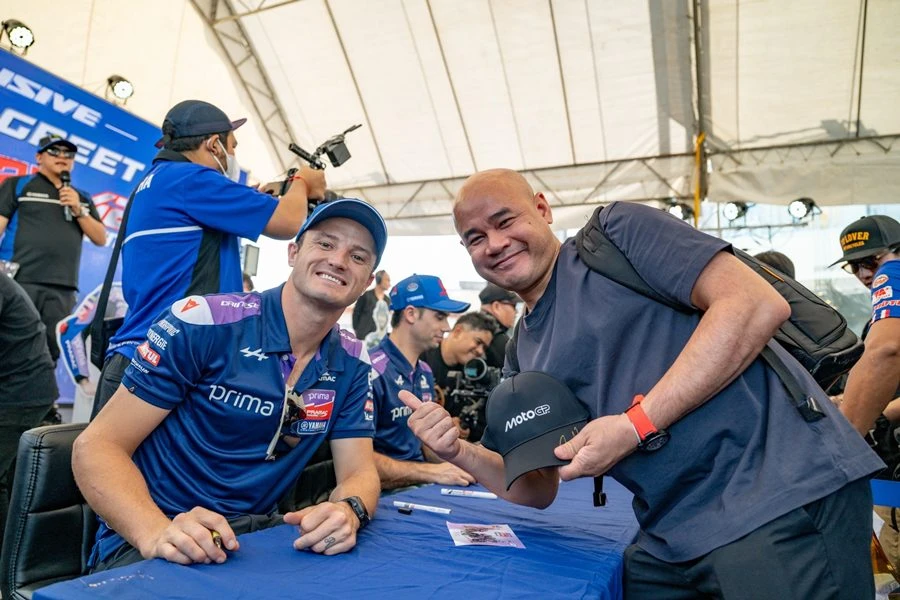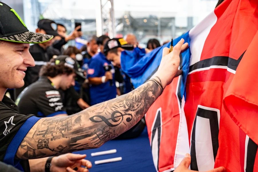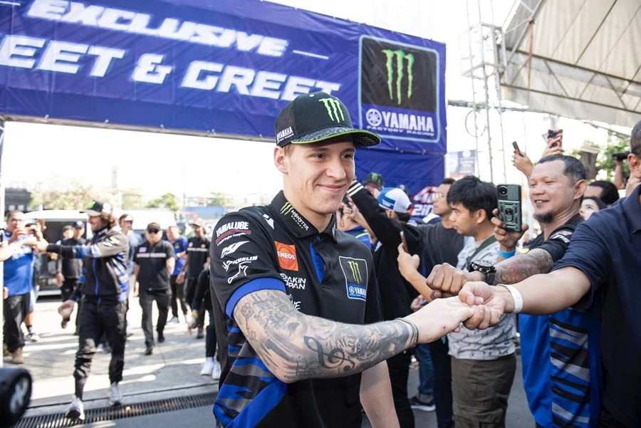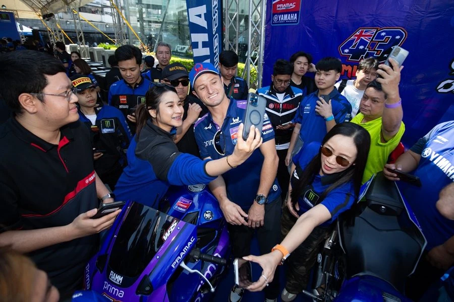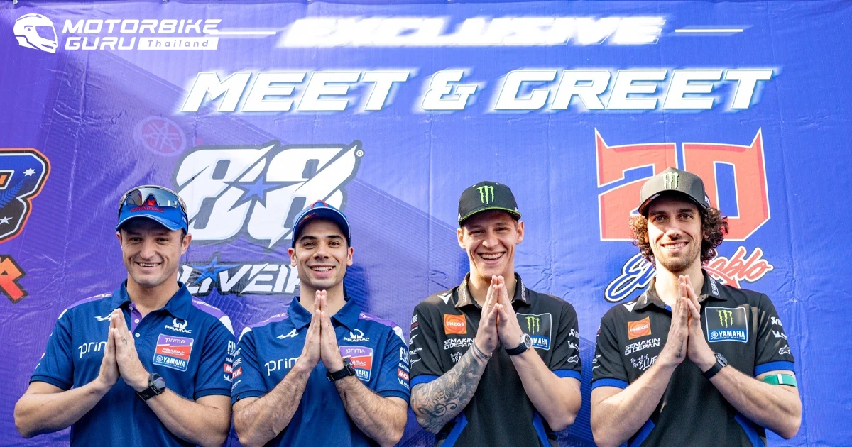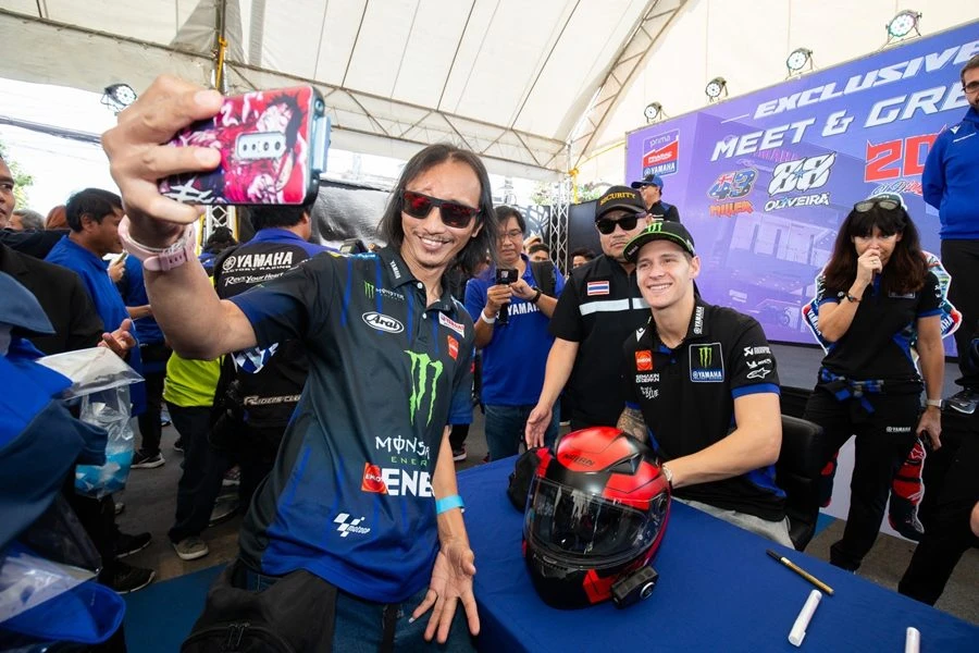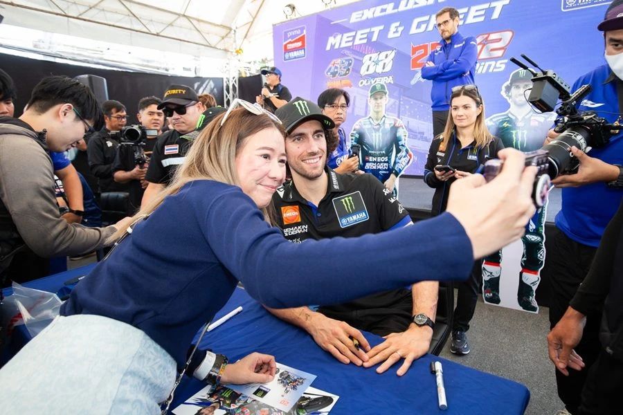 ให้การต้อนรับ และถ่ายรูปร่วม ฟาบิโอ กวาร์ตาราโร #FQ20 อเล็กซ์ รินส์ #AR42 นักแข่งจากสังกัด มอนสเตอร์ เอเนอร์จี้ ยามาฮ่า โมโตจีพีทีม และ แจ็ค มิลเลอร์ #JM43 มิเกล โอลิเวียรา #MO88 นักแข่งจาก พรีมาพรามัค ยามาฮ่า ในงานเอ็กซ์คลูซีฟ มีทแอนด์กรี๊ด 4 นักแข่งระดับโลก