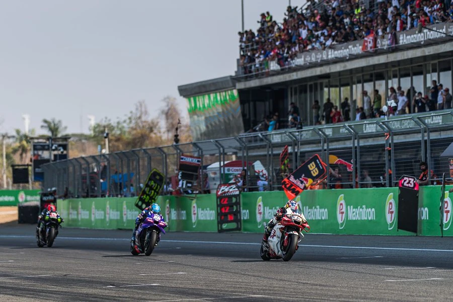 ศึก โมโตจีพี 2025 ที่มาเปิดฤดูกาลที่ไทย ภายใต้ชื่อ พีที กรังด์ปรีซ์ ออฟ ไทยแลนด์ ผ่านการแข่งขัน สปรินต์เรซ ในบ่ายวันเสาร์ที่ 1 มีนาคม 2568 ที่สนามช้าง อินเตอร์เนชั่นแนล เซอร์กิต จ.บุรีรัมย์ ชิงชัยทั้งสิ้น 13 รอบสนาม ต่อหน้าแฟนความเร็วหลายหมื่นคนที่หลั่งไหลเข้าสู่สนามอย่างหนาตา ไม่แพ้กับวันแข่งขัน