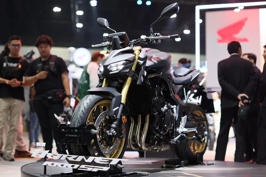 ตามด้วย New Honda CB1000 Hornet SP ซูเปอร์ Naked ไบค์ระดับท็อปคลาส ผสานความแรงจากสนามแข่งเข้ากับการออกแบบที่ดุดันในแบบสปอร์ต Naked ให้ความแรงที่สุดในคลาสด้วยเครื่องยนต์ 1000 ซีซี 4 สูบเรียง พร้อมไปทุกเส้นทางด้วยโช้ก Öhlins ปรับได้เต็มรูปแบบควบคุมรถได้ดั่งใจ พร้อมปั๊มเบรก Brembo ให้ความแม่นยำทุกครั้งที่หยุดรถ ควบคุมง่ายดั่งใจด้วย Quick Shifter ที่ปรับได้ 3 ระดับ ระบบคันเร่งไฟฟ้า (Throttle-by-Wire), Riding Mode ที่ปรับได้ถึง 5 โหมด และ Honda Selectable Torque Control (HSTC) ที่ช่วยควบคุมการหมุนล้อหน้าและล้อหลังให้สัมพันธ์กัน แสดงผลด้วยเทคโนโลยีหน้าจอ TFT ขนาด 5 นิ้ว รองรับการเชื่อมต่อกับสมาร์ตโฟนผ่านแอปพลิเคชัน Honda RoadSync พร้อมไฟแบ็กไลท์ที่แฮนด์บาร์ใช้งานสะดวก เชื่อมต่อได้ทุกเส้นทาง New Honda CB1000 Hornet SP พร้อมวางจำหน่าย ‘สีดำ MAT BALLISTIC BLACK METALLIC’ ในราคาแนะนำที่ 489,000 บาท