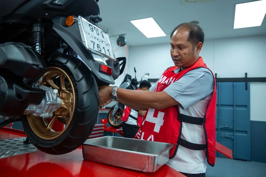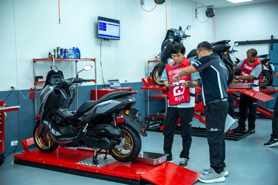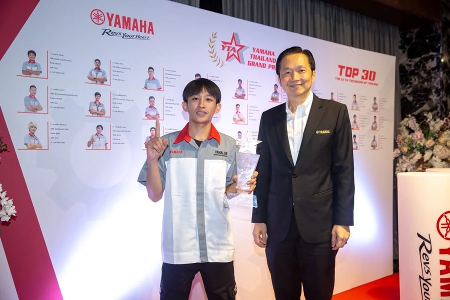 นายพงศธร เอื้อมงคลชัย ประธานกรรมการบริหาร, นายกัมพล พรสูงส่ง รองผู้จัดการใหญ่ด้านการขาย บริการ และอะไหล่ บริษัท ไทยยามาฮ่ามอเตอร์ จำกัด, มร.ยูคิโอะ ทานากะ ผู้จัดการทั่วไปฝ่ายบริการ บริษัท ยามาฮ่ามอเตอร์ จำกัด (ประเทศญี่ปุ่น) ร่วมกันมอบรางวัลให้แก่ผู้ชนะการแข่งขัน YAMAHA THAILAND TECHNICIAN GRAND PRIX 2025 รอบชิงชนะเลิศระดับประเทศ เพื่อเป็นการยกระดับฝีมือช่างประจำศูนย์บริการยามาฮ่าทั่วประเทศ และค้นหาสุดยอดช่างซ่อมรถจักรยานยนต์ยามาฮ่าในประเทศไทยเพื่อเป็นตัวแทนไปร่วมทำการแข่งขัน WORLD TECHNICIAN GRAND PRIX 2025 ณ ประเทศญี่ปุ่น