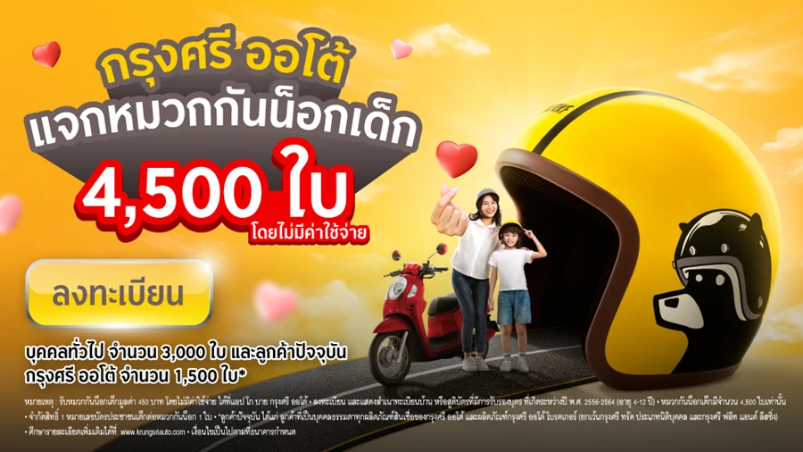 กรุงศรี ออโต้ ผู้นำธุรกิจสินเชื่อยานยนต์ครบวงจร เครือธนาคารกรุงศรีอยุธยา จำกัด (มหาชน) สานต่อพันธกิจในการสร้างสรรค์ชีวิตผู้ใช้รถให้ดีขึ้น ปลุกความรับผิดชอบต่อสังคม ผ่านแคมเปญ #สั่งก่อนเสีย (The Life Saver) ภายใต้โครงการ LET’sponsible เดินหน้ารณรงค์ความปลอดภัยบนท้องถนน โดยเฉพาะในกลุ่มเด็ก ด้วยการมอบหมวกกันน็อกสำหรับเด็กอายุ 4-12 ปี จำนวน 4,500 ใบ โดยเปิดให้ผู้ปกครองลงทะเบียนรับโดยไม่มีค่าใช้จ่ายผ่านแอป โก บาย กรุงศรี ออโต้ ตั้งแต่วันที่ 10 มิถุนายน – 10 สิงหาคม 2568 แบ่งเป็นสำหรับบุคคลทั่วไป 3,000 ใบ และสำหรับลูกค้าปัจจุบันของกรุงศรี ออโต้ 1,500 ใบ พร้อมส่งภาพยนตร์สั้น หวังกระตุ้นให้ผู้ปกครองเห็นความสำคัญของการสวมหมวกกันน็อกให้เด็กก่อนเดินทาง เพื่อสร้างวัฒนธรรมการขับขี่ปลอดภัยอย่างยั่งยืน