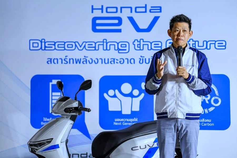ภายใต้แผนการพัฒนารถจักรยานยนต์พลังงานไฟฟ้าหลากหลายรูปแบบ ไทยฮอนด้า เผยโฉมรถจักรยานยนต์ไฟฟ้ารุ่นใหม่ที่เปิดให้บุคคลทั่วไปเข้าถึงเทคโนโลยี EV ผ่าน New Honda CUV e: ซึ่งเป็นรถจักรยานยนต์ไฟฟ้า 100% รุ่นใหม่ ภายใต้แนวคิด ‘Smart Ride, Future Ready’ โดยรุ่นนี้เป็นผลลัพธ์จากประสบการณ์กว่า 30 ปี ในการพัฒนายานยนต์ไฟฟ้าของฮอนด้า นับตั้งแต่การเปิดตัวต้นแบบรุ่น CUV ES ในประเทศญี่ปุ่นเมื่อปี 1994