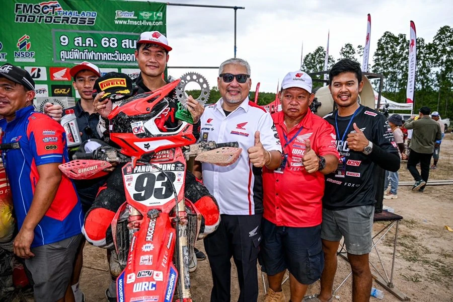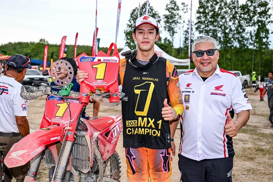 ฮอนด้า ผงาดคว้าแชมป์ประเทศไทยสร้างประวัติศาสตร์ ศึก FMSCT Thailand Motocross 2025 รุ่น Premier MX-1 ที่ยกระดับเทียบเท่าการแข่งขันนานาชาติ จากผลงานของยอดนักแข่งที่ได้รับการจับตามองอย่าง นีโม่-จิรัฎฐ์ วรรณลักษณ์ หมายเลข 177 บิด Honda CRF450R สังกัดทีม Honda Racing Thailand Idemitsu Wannalak Motorsport ด้วยการเก็บคะแนนสะสมขาดลอยคว้าแชมป์เป็นที่แน่นอนแล้วโดยไม่ต้องลุ้นผลการแข่งขันสนามสุดท้าย ในสนามที่ 9 ที่สนามศูนย์ฝึกกีฬามอเตอร์สปอร์ตแห่งประเทศไทยภาคตะวันออก ห้วยใหญ่ จ.ชลบุรี