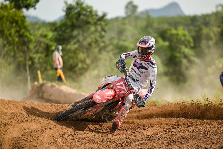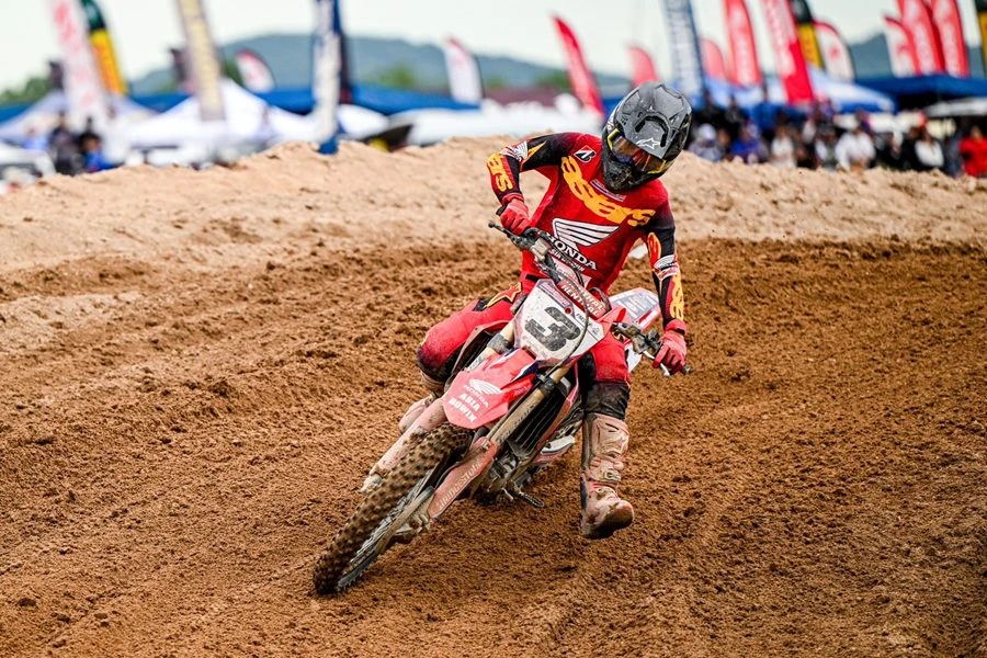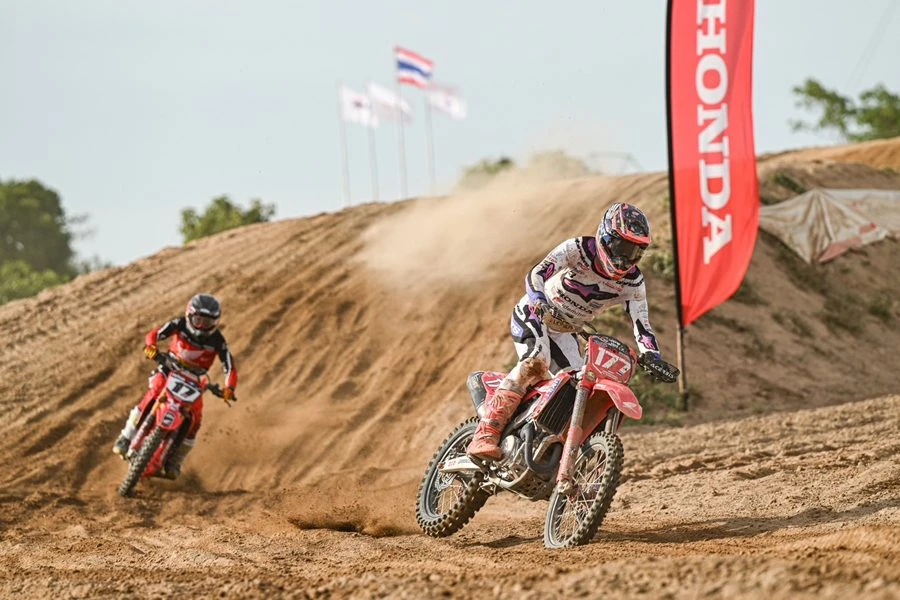 จากผลงานของ นีโม่-จิรัฎฐ์ และรถแข่งทางฝุ่น Honda CRF450R หมายเลข 177 หลังจากที่ ศึกทางฝุ่นชิงแชมป์ประเทศไทย ยกระดับพิกัดการแข่งขันเพื่อเทียบเท่ากับเกมความเร็วระดับโลก พร้อมกวดอีกแชมป์ในรุ่นท็อปของรายการอย่าง Pro MX-2 ควบคู่ไปกับการทำผลงานของทัพนักบิด Honda CRF450R ขณะที่ฮอนด้าขอต่อยอดปีทอง สานต่อความสำเร็จด้วยการป้องกันแชมป์ในซีซั่นหน้า พร้อมพัฒนาและดันนักแข่งไทยสู่การแข่งขันระดับโลก ศึก FMSCT Thailand Motocross 2025 สนามที่ 10 แข่งขันกันต่อเนื่องที่สนามศูนย์ฝึกกีฬามอเตอร์สปอร์ตแห่งประเทศไทยภาคตะวันออก ห้วยใหญ่ จ.ชลบุรี
