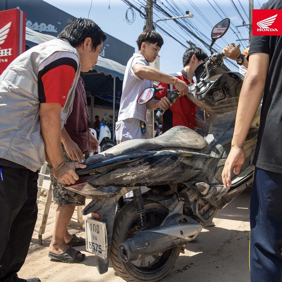 จากกระแสน้ำที่ไหลเชี่ยวและรุนแรง ทำให้ประชาชนจำนวนมากได้รับความเสียหายทั้งที่อยู่อาศัยและยานพาหนะ โดยเฉพาะรถจักรยานยนต์ซึ่งเป็นพาหนะหลักในการดำเนินชีวิต ไทยฮอนด้าจึงได้เร่งระดมช่างผู้เชี่ยวชาญเข้าดูแลการซ่อมแซมอย่างครบวงจร