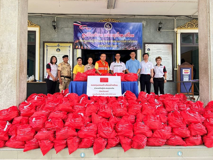 นอกจากนี้ กองทุนฮอนด้าเคียงข้างไทย ภายใต้มูลนิธิฮอนด้าประเทศไทย ยังจัดกิจกรรมเข้าช่วยเหลือผู้ประสบภัยน้ำท่วมฉับพลันใน 3 จังหวัด ได้แก่ น่าน แพร่ และสุโขทัย โดยได้มอบอาหารกล่อง 5,000 กล่อง ณ เทศบาลจังหวัดน่าน และส่งมอบถุงยังชีพ 1,000 ถุงให้แก่ผู้ประสบภัยในพื้นที่ทั้ง 3 จังหวัด รวมมูลค่าความช่วยเหลือกว่า 800,000 บาท อีกทั้งพร้อมมอบส่วนลดค่าอะไหล่ 30% และค่าแรง 15% สำหรับลูกค้ารถยนต์ฮอนด้าทุกรุ่นที่ได้รับผลกระทบจากน้ำท่วม โดยไทยฮอนด้าได้คำนึงถึงการอยู่เคียงข้างและช่วยเหลือพี่น้องคนไทยในยามเดือดร้อน พร้อมเดินหน้าสนับสนุนการฟื้นฟูชุมชนให้กลับมาดำเนินชีวิตได้ตามปกติโดยเร็วที่สุด