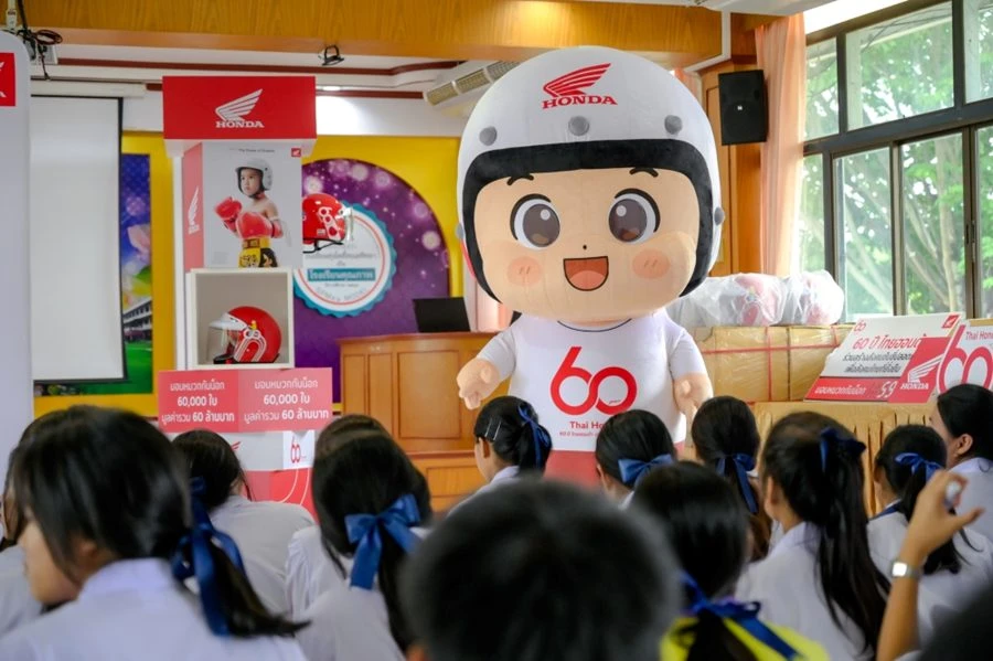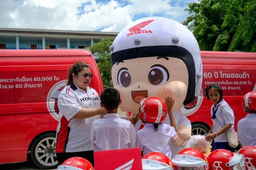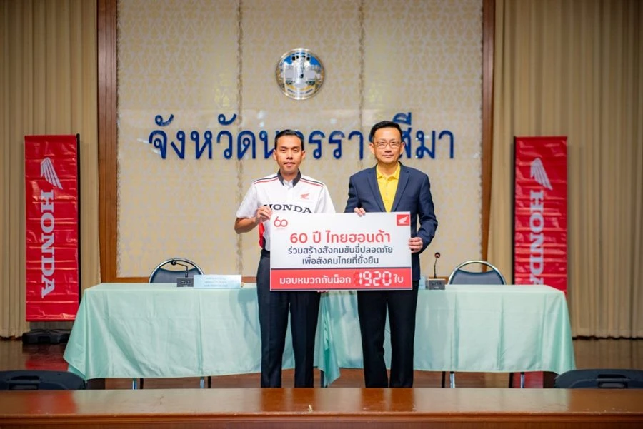 ไทยฮอนด้า ร่วมกับ ร้านผู้จำหน่ายทั่วประเทศ ที่ร่วมโครงการฉลองวาระครบรอบ 60 ปี เดินหน้าส่งมอบความห่วงใยสู่สังคมไทย ผ่านโครงการรณรงค์ความปลอดภัยทางถนนระดับประเทศ “60 ปี ไทยฮอนด้า ขับขี่ปลอดภัย เพื่อสังคมไทยที่ยั่งยืน” โดยจากเดิมที่ไทยฮอนด้ามอบหมวกกันน็อกมาตรฐาน มอก. จำนวน 60,000 ใบ มูลค่า 60 ล้านบาท ล่าสุด ร้านผู้จำหน่ายรถจักรยานยนต์ฮอนด้าทั่วประเทศร่วมสมทบเพิ่มอีก 52,440 ใบ ส่งผลให้ยอดรวมการมอบหมวกกันน็อกในโครงการนี้อยู่ที่ 112,440 ใบ รวมมูลค่า 112 ล้านบาท สามารถส่งมอบให้ประชาชนใน 77 จังหวัดทั่วประเทศได้ทั่วถึงและครอบคลุมยิ่งขึ้น