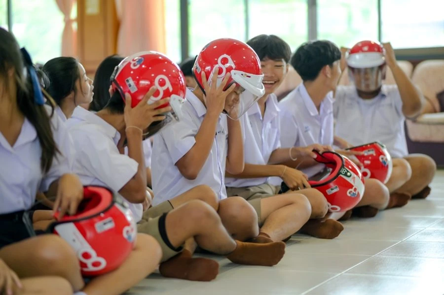 พร้อมกันนี้ ไทยฮอนด้าได้เริ่มต้นปล่อย คาราวานส่งมอบหมวกกันน็อก 60 ปี เดินสายครอบคลุมทั้ง 77 จังหวัดทั่วประเทศ โดยประเดิมส่งมอบหมวกกันน็อกที่จังหวัดนครราชสีมาจำนวน 1,920 ใบ และกำแพงเพชรจำนวน 720 ใบ เมื่อวันที่ 19 สิงหาคมที่ผ่านมา โดยโครงการนี้มุ่งเน้นการส่งมอบหมวกกันน็อกให้เด็กและเยาวชน เนื่องจากเป็นกลุ่มที่มีอัตราการสวมหมวกกันน็อกค่อนข้างน้อย การปลูกฝังตั้งแต่วัยเยาว์จึงถือเป็นก้าวสำคัญในการสร้างวัฒนธรรมการขับขี่ปลอดภัย ลดอุบัติเหตุ และช่วยให้เยาวชนเติบโตเป็นผู้ที่เข้าใจการใช้รถจักรยานยนต์อย่างปลอดภัย