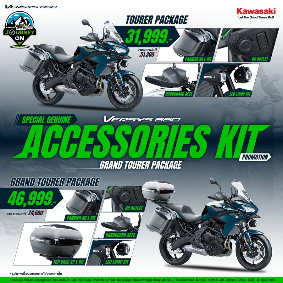 นอกจากกิจกรรมมากมายแล้ว สำหรับสายท่องเที่ยวที่ยังลังเล คาวาซากิพร้อมเสนอแพคเกจอุปกรณ์ตกแต่งแท้คาวาซากิ ในราคาพิเศษที่สามารถรวมเข้าไปในยอดผ่อนชำระได้เลย ทั้งสะดวกและประหยัด เอาใจสายทัวร์ริ่งโดยเฉพาะ