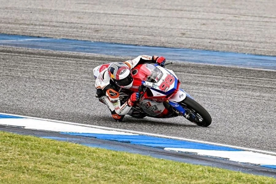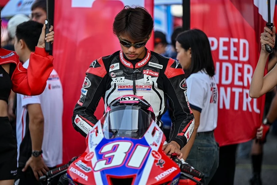 ในเรซที่ 1 3 นักบิดดาวรุ่งฮอนด้าเดือดสนั่นบุรีรัมย์! บิด Honda CBR พาเหรดขึ้นโพเดียม สำหรับรุ่น SB1 Pro ไฮไลท์ของรายการที่ดวลกันด้วยรถแข่งที่เร็วและแรงที่สุด ดาวรุ่งไทยฮอนด้า มิกซ์-ธนัช หมายเลข 31 จาก อิเดมิตสึ ฮอนด้า ทีม คริสมาส บิด Honda CBR1000RR-R ทำเวลาในการควอลิฟายมาในกริดที่ 2 เริ่มต้นเกมได้อย่างแข็งแกร่งชาร์จความเร็วขึ้นมาเป็นผู้นำได้ทันที โดยปักหลักดวลความเร็วกับคู่แข่งที่มีประสบการณ์มากกว่าเพื่อลุ้นชัยชนะ