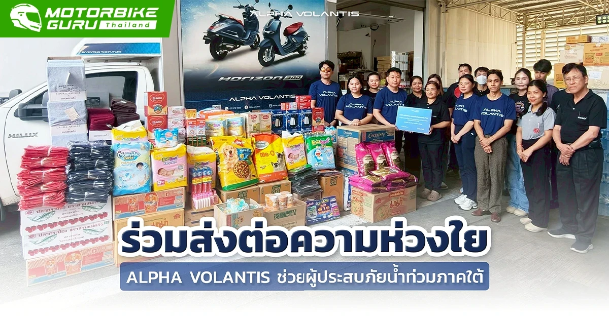 .ท่ามกลางสถานการณ์อุทกภัยในพื้นที่ภาคใต้ ที่กำลังกระทบประชาชนเป็นจำนวนมาก บริษัท ทริลเลี่ยน มอเตอร์ (ไทยแลนด์) จำกัด ผู้จัดจำหน่ายรถจักรยานยนต์ Alpha Volantis ร่วมเป็นส่วนหนึ่งเพื่อช่วยสังคมไทย ส่งต่อความห่วงใยพี่น้องชาวใต้ ด้วยการส่งมอบสิ่งของอุปโภค-บริโภค รวมถึงของใช้จำเป็น มอบให้กับ บริษัท ไทยดำรง มาร์เก็ตติ้ง จำกัด (Camera Baby Thailand) เพื่อเป็นตัวแทนส่งไปยังพื้นที่ที่ได้รับผลกระทบ