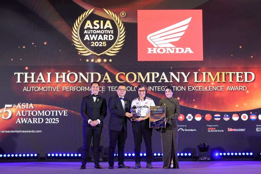 บริษัท ไทยฮอนด้า จำกัด ตอกย้ำบทบาทผู้นำวงการรถจักรยานยนต์ไทย ด้วยการคว้า 2 รางวัลจากเวทีประกาศรางวัลยานยนต์ระดับภูมิภาค The 5th Asia Automotive Award 2025 – Thailand Chapter (AAA) สะท้อนความสำเร็จทั้งด้านผลิตภัณฑ์ และเทคโนโลยีขององค์กรในระดับภูมิภาค ในส่วนของรางวัล Automotive Icon of the Year Award มอบให้แก่ ก้อง-สมเกียรติ จันทรา นักแข่งรถจักรยานยนต์ชาวไทยผู้สร้างประวัติศาสตร์ในศึก MotoGP