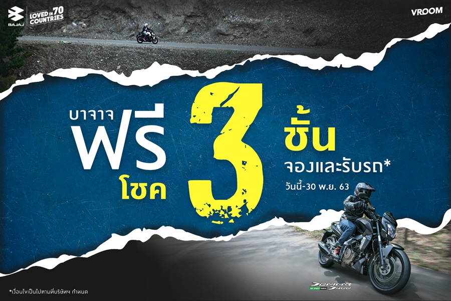 บาจาจ มอบโชค 3 ชั้นโปรโมชั่นสุดพิเศษที่พลาดไม่ได้ พร้อมของแถมหลายรายการ บาจาจ ไทยแลนด์ ต่อเวลาความสุข ต้อนรับสมาชิกใหม่ กับข้อเสนอสุดสมาร์ท ที่แฟน ๆ บาจาจ พลาดไม่ได้ ด้วยราคาพิเศษช่วงแนะนำ ตั้งแต่วันนี้ - 30 พฤศจิกายน 2563 ที่ โชว์รูม บาจาจ ทั่วประเทศ