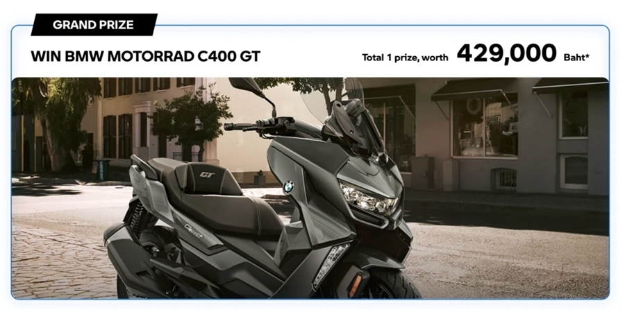 ลุ้นต่อที่ 2… ลุ้นรางวัลใหญ่ Grand Prize BMW Motorrad C400 GT มูลค่า 429,000 บาท*