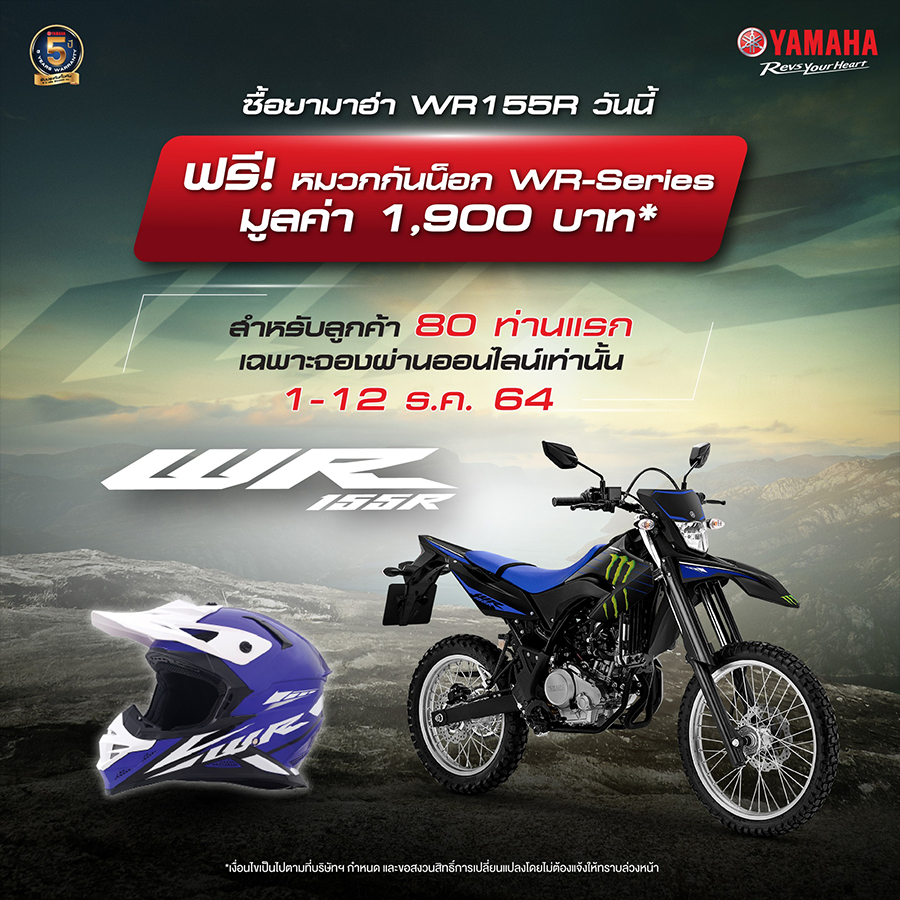 ซื้อ YAMAHA WR155R ฟรี! หมวกกันน็อก WR-Series มูลค่า 1,900 บาท* เฉพาะลูกค้าที่จองออนไลน์ 80 ท่านแรกเท่านั้น!