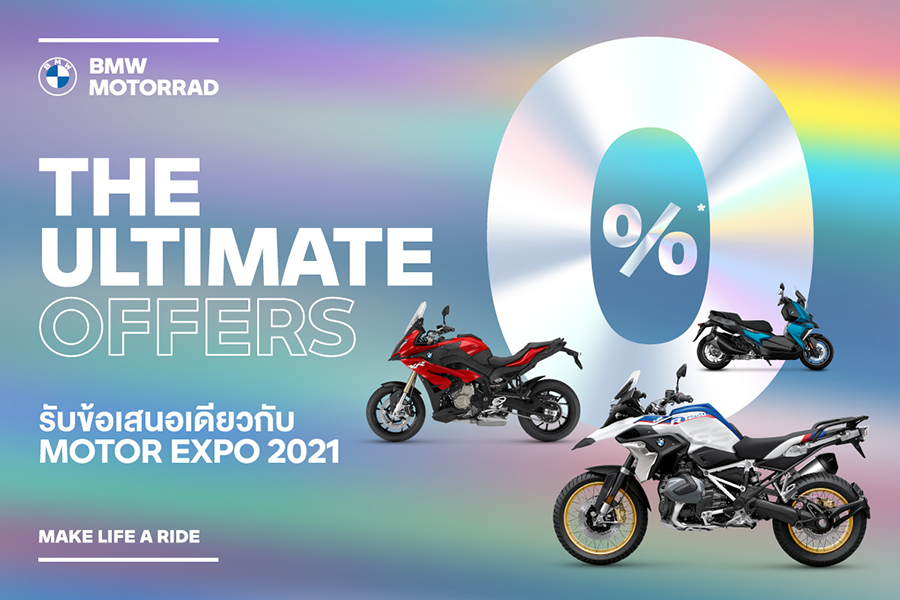 - ข้อเสนอนี้พิเศษสำหรับลูกค้าที่จองรถบีเอ็มดับเบิลยู มอเตอร์ราด พร้อมทำสัญญาทางการเงินที่ร่วมรายการกับ บีเอ็มดับเบิลยู ไฟแนนเชียล เซอร์วิส ประเทศไทย ตั้งแต่วันนี้ – 31 ธันวาคม 2564 และรับรถภายใน 31 ธันวาคม 2564