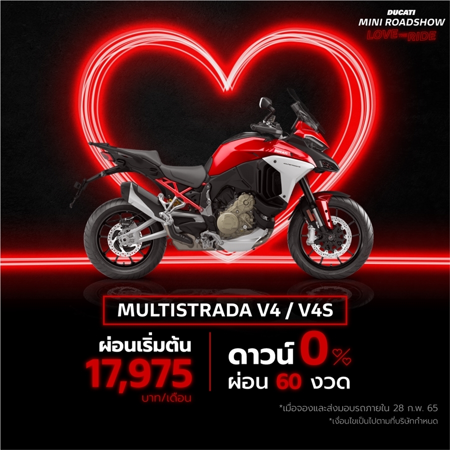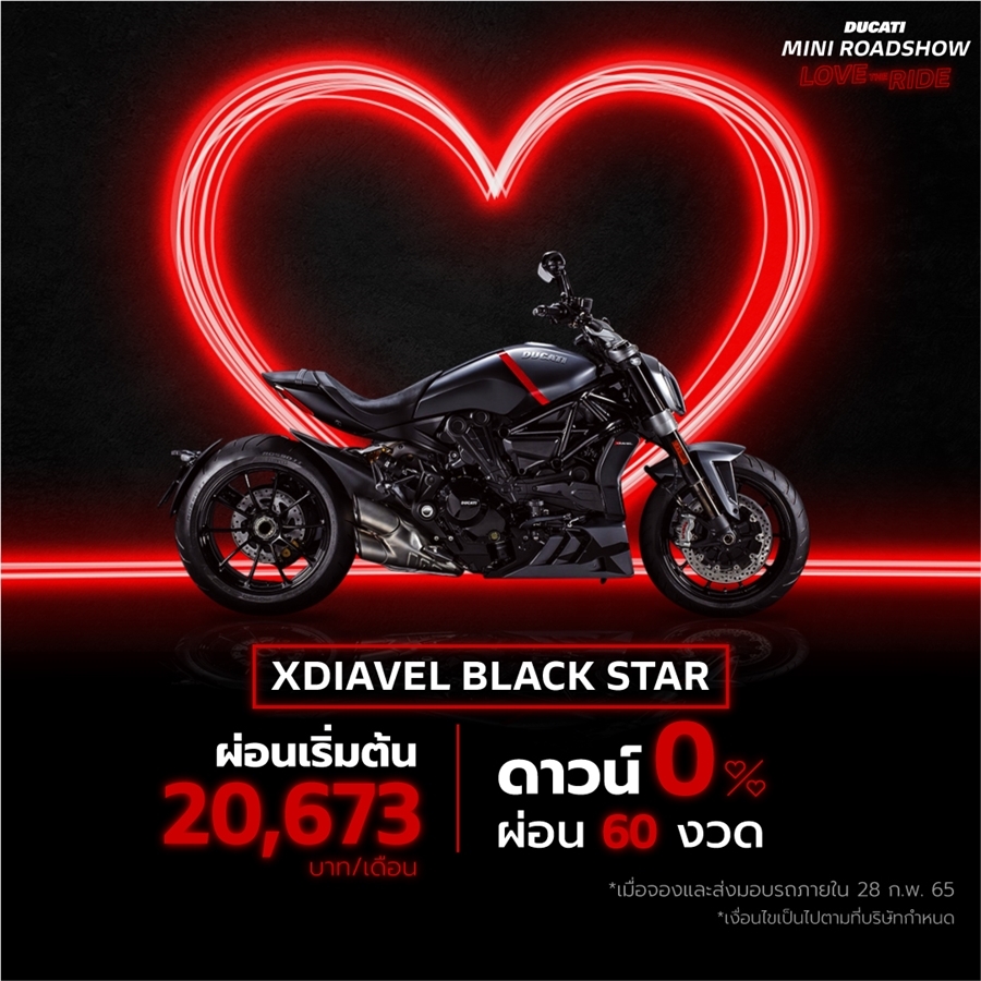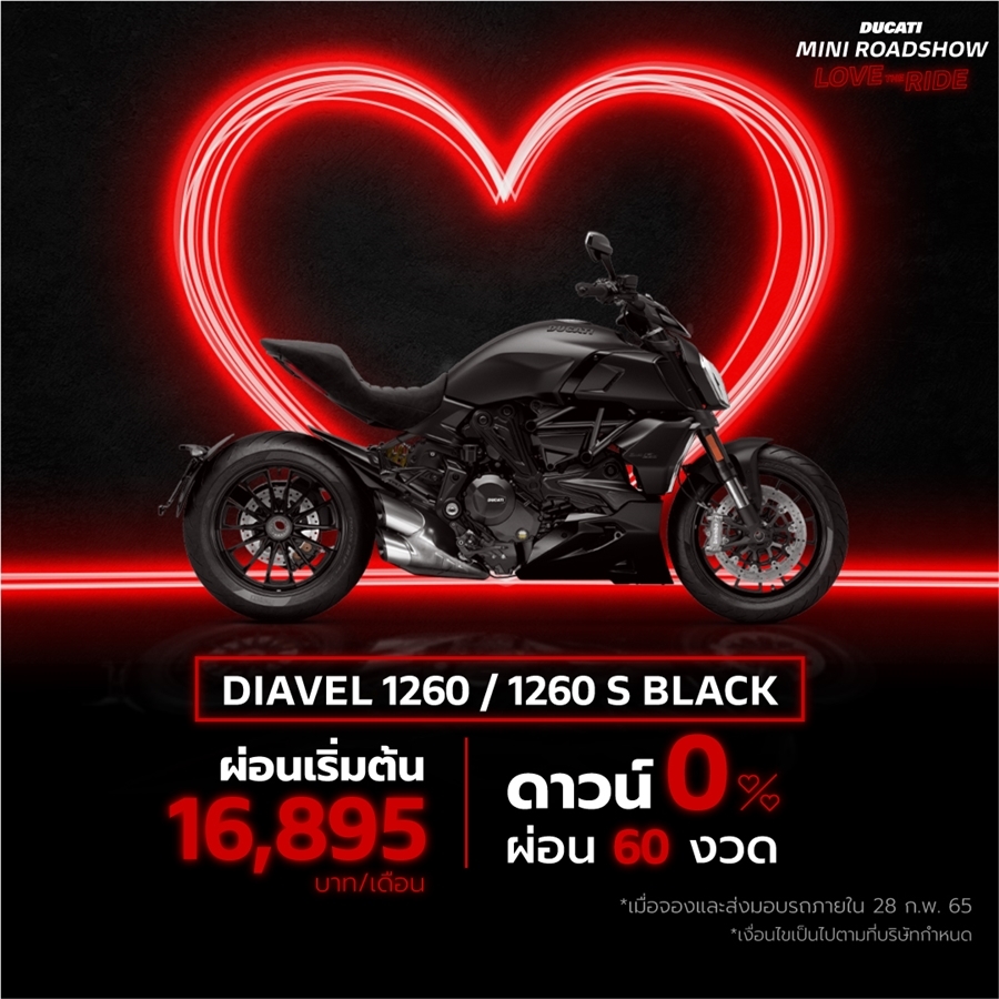 Ducati ชวนร่วมกิจกรรมพิเศษกับครั้งแรกกับงาน Ducati Mini Roadshow พร้อมฉลองเดือนแห่งความรักกับข้อเสนอสุดพิเศษ ดาวน์ 0% ผ่อนนานสูงสุด 60 เดือน ผ่อนเริ่มต้นเพียง 7,179 บาท / เดือน และพบกับ Simulator Moto Trainer ที่เดียวในเอเชีย ที่ยกไปให้ชาวฝั่งธนฯ ได้ท้าประลองความมันส์กันในงาน!