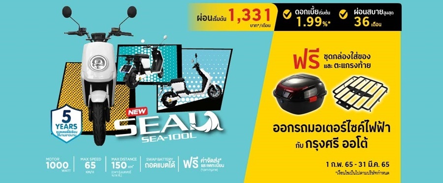 กรุงศรีออโต้ จัดโปรโมชั่นพิเศษสำหรับผู้ที่สนใจออกรถมอเตอร์ไซค์ไฟฟ้า Strom EV Bike และ รถมอเตอร์ไซค์ไฟฟ้า Deco EV Bike เพียงสมัครสินเชื่อ กรุงศรี มอเตอร์ไซค์ ผ่านทุกช่องทาง ของกรุงศรี ออโต้ ระหว่างวันที่ 1 กุมภาพันธ์ 2565 – 31 มีนาคม 2565 นี้