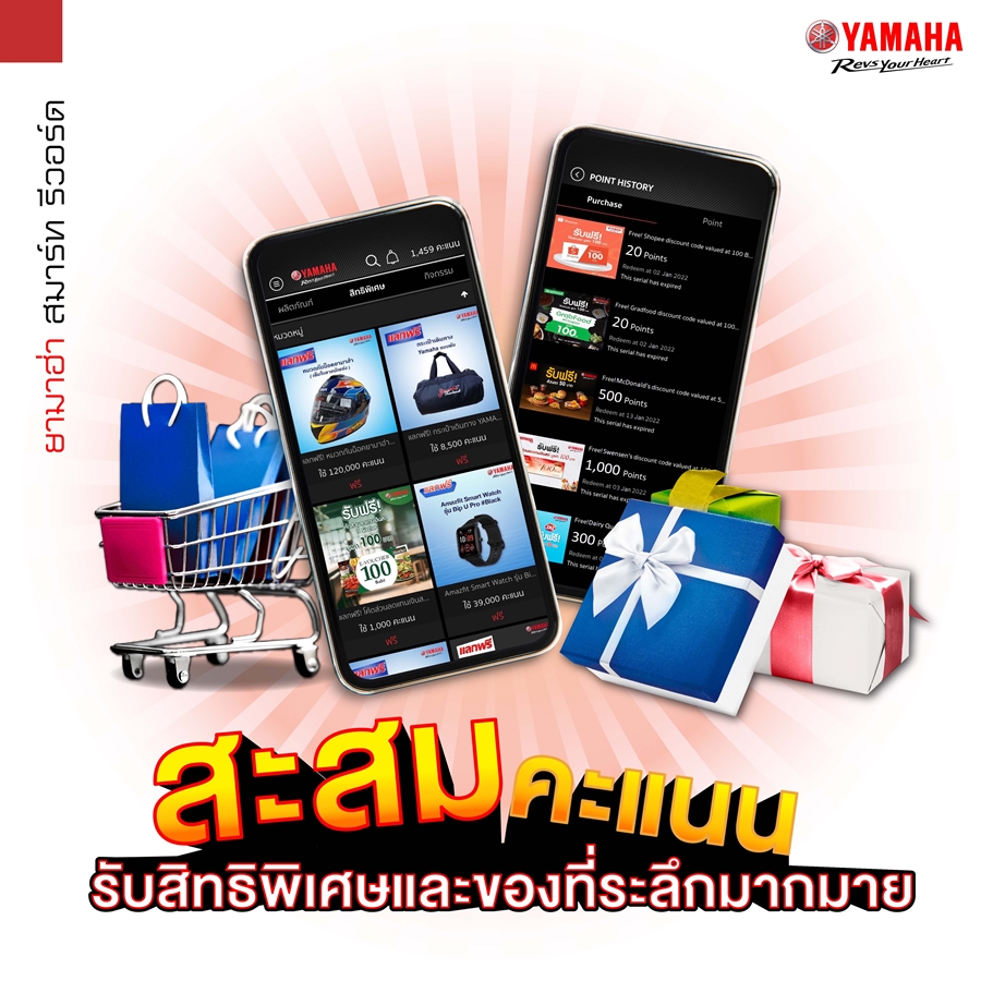 YAMAHA SMART REWARD แอปพลิเคชันสุดล้ำ สำหรับชาวยามาฮ่า ที่ทำให้ทุกอย่างเป็นเรื่องง่าย เพื่อตอบโจทย์ทุกไลฟ์สไตล์ของชาวสองล้อรับสิทธิพิเศษเหนือใคร พร้อมอัพเดทข้อมูลข่าวสารโปรโมชันสุดฮอตจากยามาฮ่า สะสมแต้มจากการใช้บริการที่โชว์รูมยามาฮ่า หรือร่วมสนุกกับกิจกรรมในแอปเพื่อแลกของที่ระลึกสุดปัง รับส่วนลด หรือสิทธิพิเศษจากร้านค้าชั้นนำที่ร่วมรายการ เช็กประวัติรถจักรยานยนต์คู่ใจ พร้อมค้นหาศูนย์บริการยามาฮ่าใกล้คุณ
